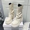 Плиссированные кремовые сапоги на толстом каблуке - 2025 осень/зима британская мода женские сапоги на высоком каблуке