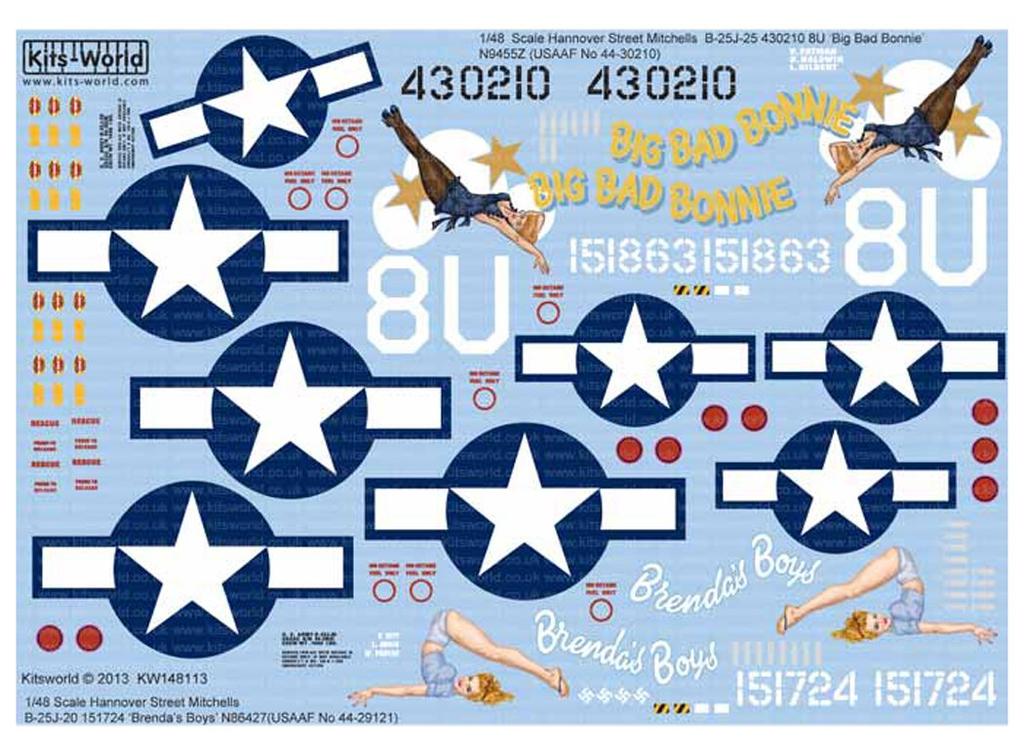 Platts KW148113 Армия США Митчелл Плохие парни [1/48 B-25J Бонни/Бренда Декаль]