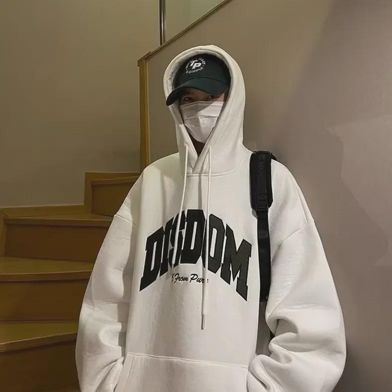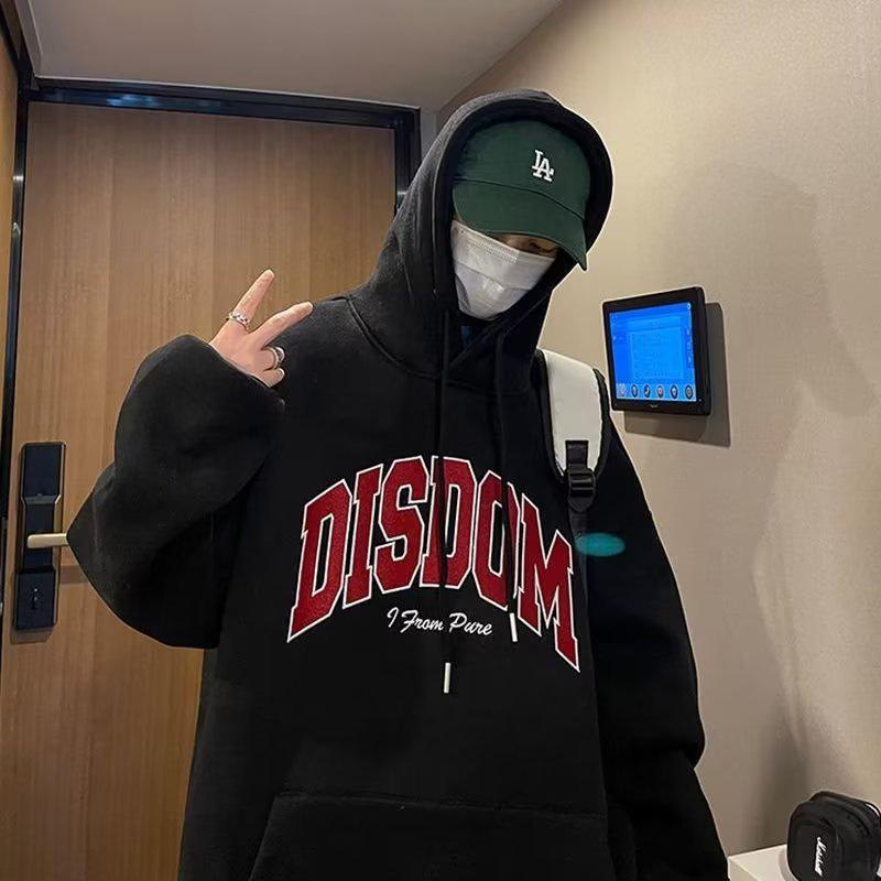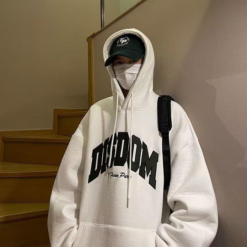 Мужская толстовка с капюшоном и буквенным принтом в американском стиле - свободная повседневная куртка с капюшоном на осень/зиму