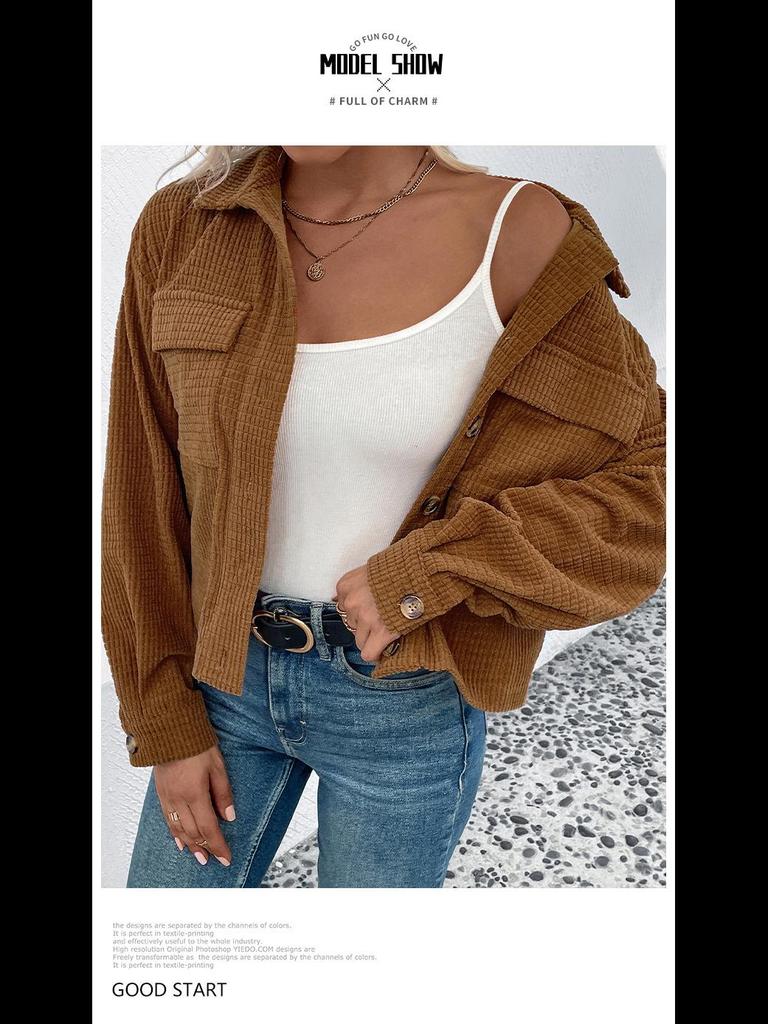 Женская куртка из вельвета коричневого цвета в стиле ретро - кардиган в европейском и американском стиле с карманами на осень/зиму 2024 года