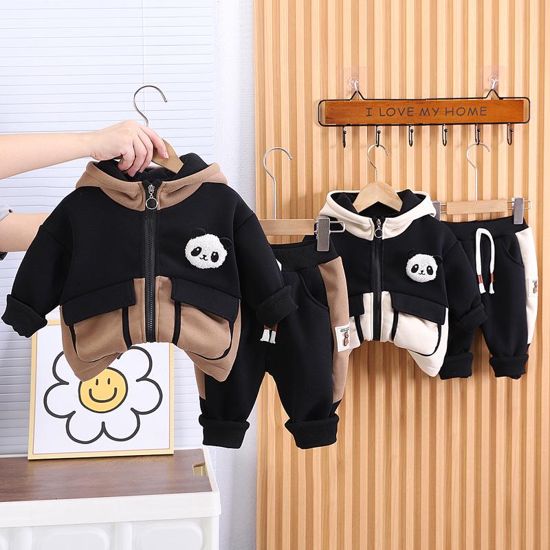 Зима и осень 2023 Стильный бархатный костюм-двойка для мальчиков и девочек - повседневная детская одежда.