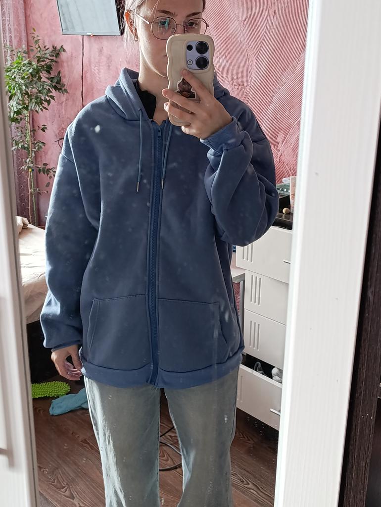 Доставка быстрая,но вот капюшон сшит как то не очень,кофта вроде бы подходит по размеру,но капюшон не одеть,очень жалко конечно.