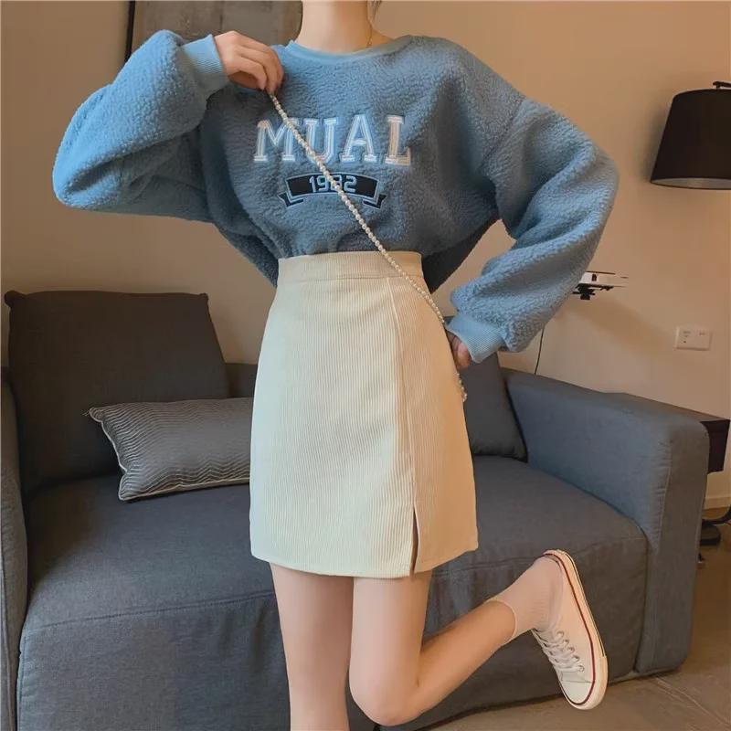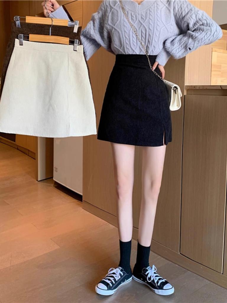 Корейская узкая юбка А-силуэта с высокой талией для женщин - мода осень/зима 2023 года