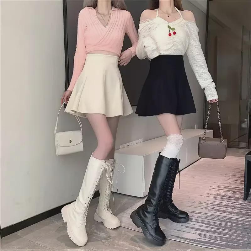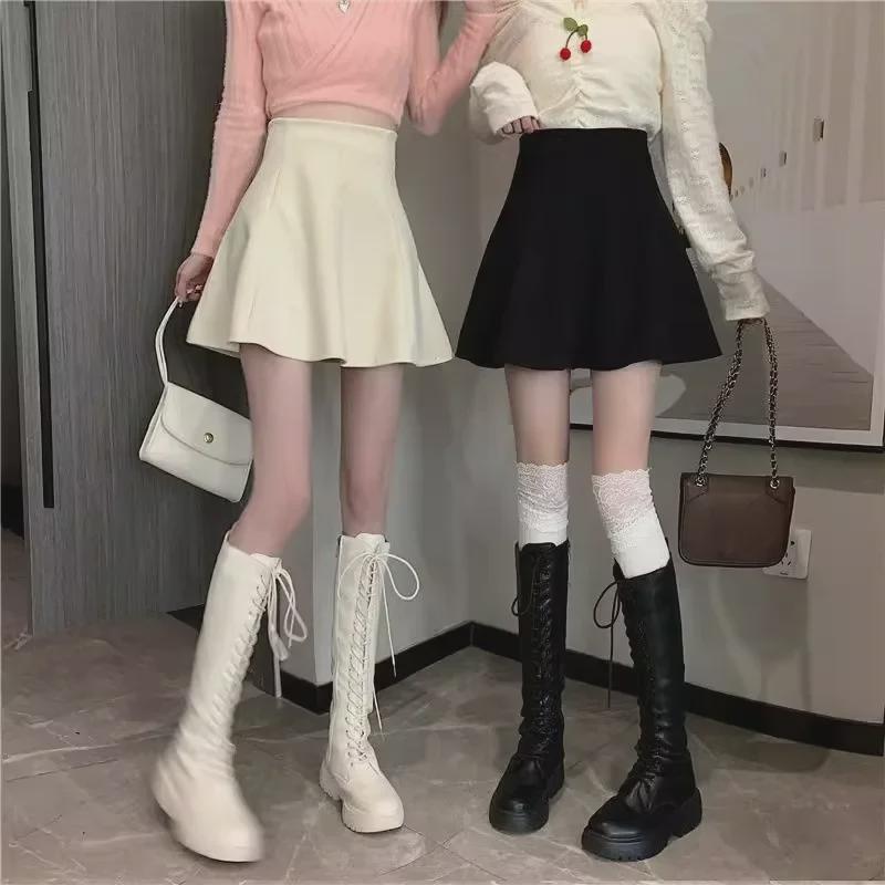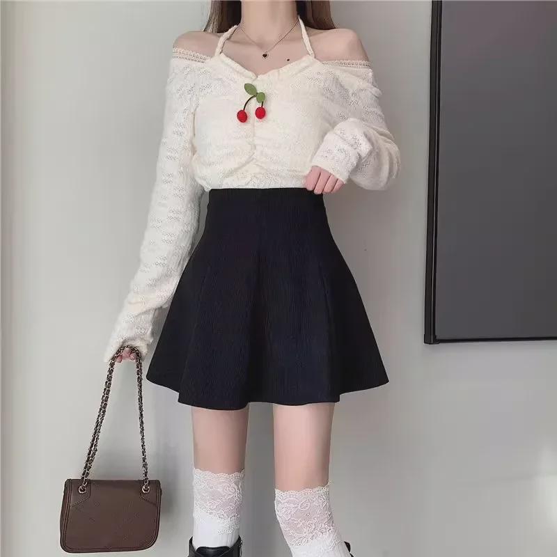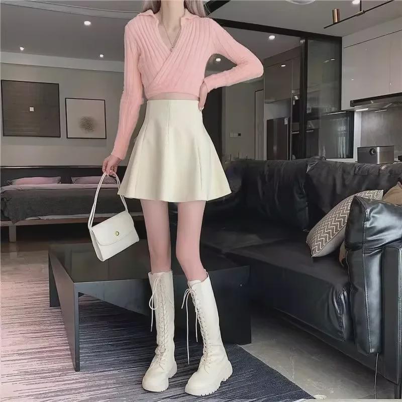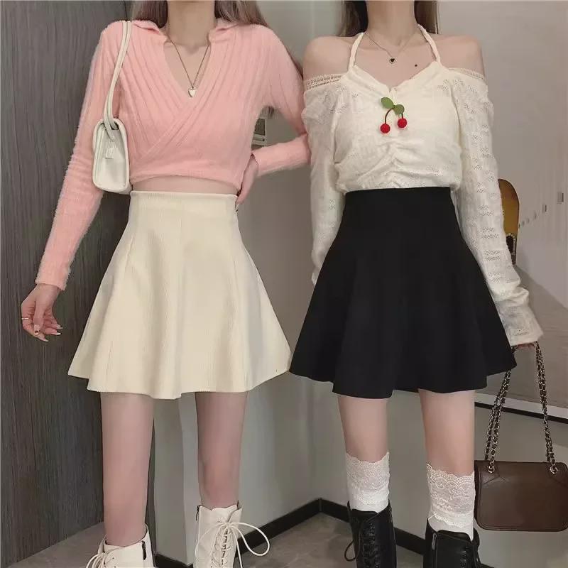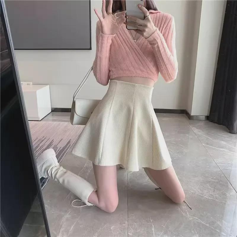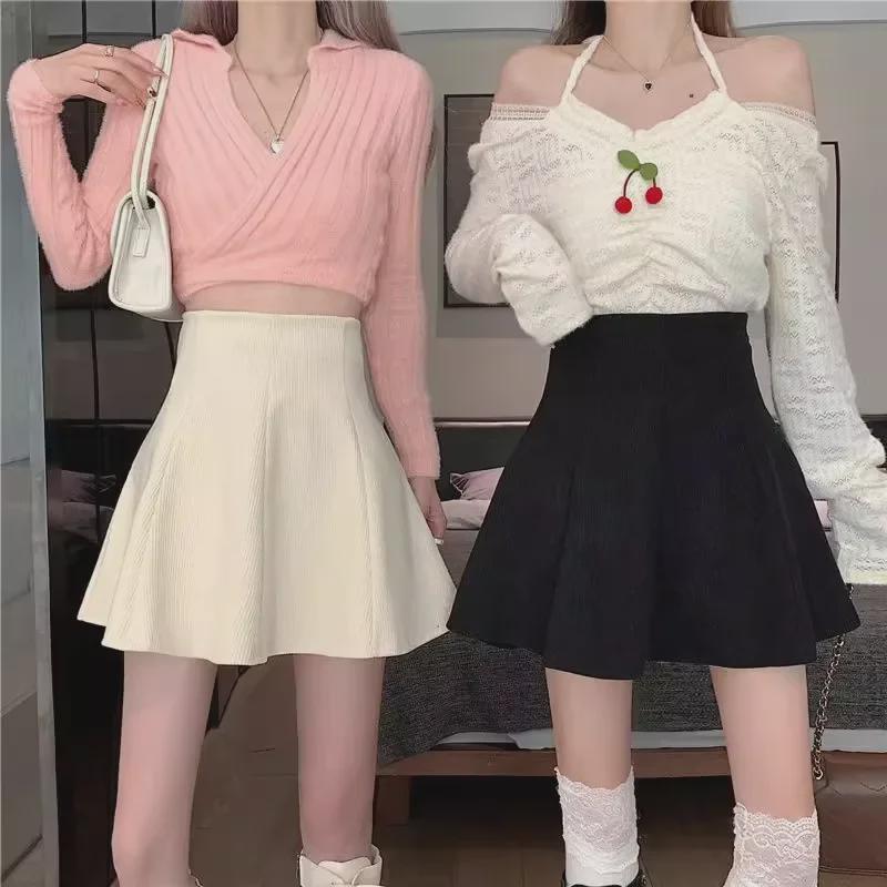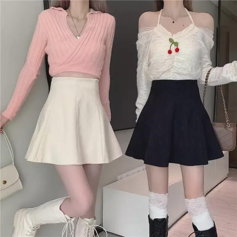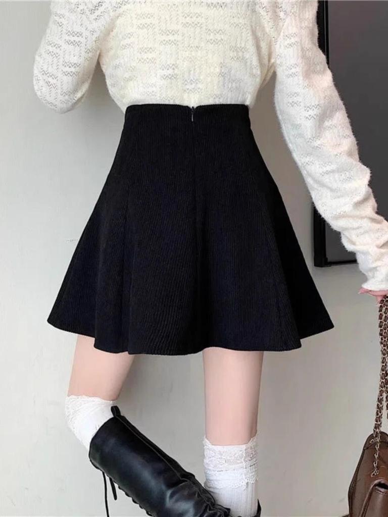 Женская вельветовая плиссированная юбка - Высокая талия, облегающий крой, А-силуэт, корейский стиль (Осень/Зима 2023)