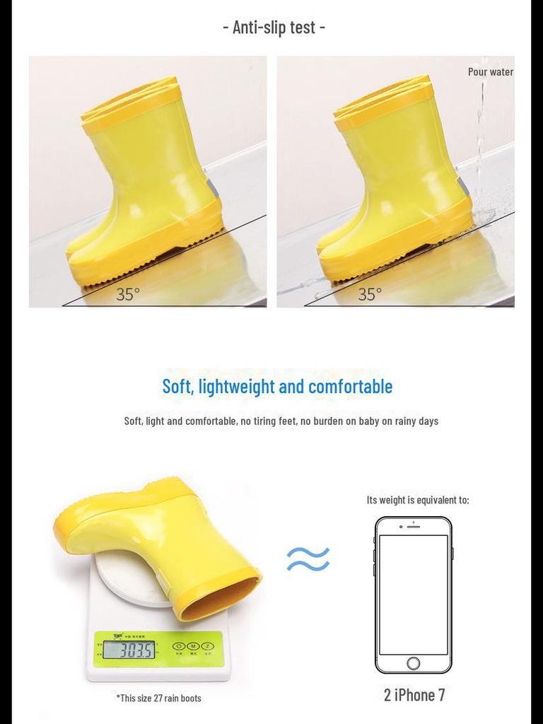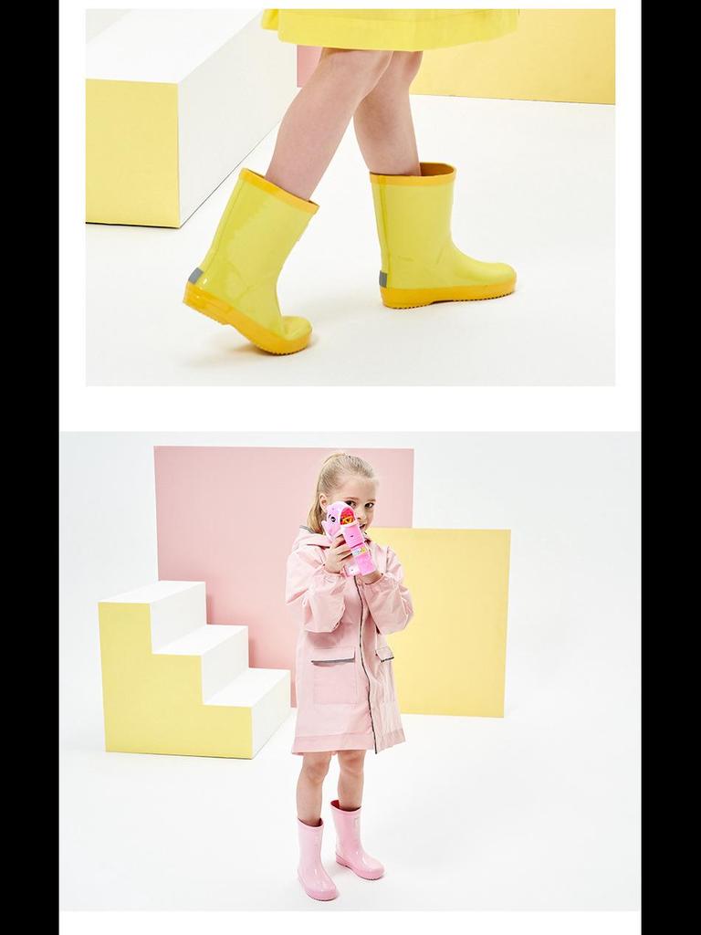 Эти стильные резиновые сапоги средней высоты идеально подходят для того, чтобы сохранить ноги вашего ребенка сухими и безопасными в дождливые дни.. Разработанные в стиле унисекс, однотонные, они предлагают универсальный и модный вариант как для мальчиков, так и для девочек.. Ботинки оснащены нескользящей подошвой для дополнительной безопасности на мокрой поверхности, а светоотражающие детали улучшают видимость в условиях плохой освещенности.. Эти резиновые сапоги, созданные по мотивам японской обувной моды, сочетают в себе функциональность и элегантную современную эстетику, что делает их обязательным предметом гардероба любого ребенка.