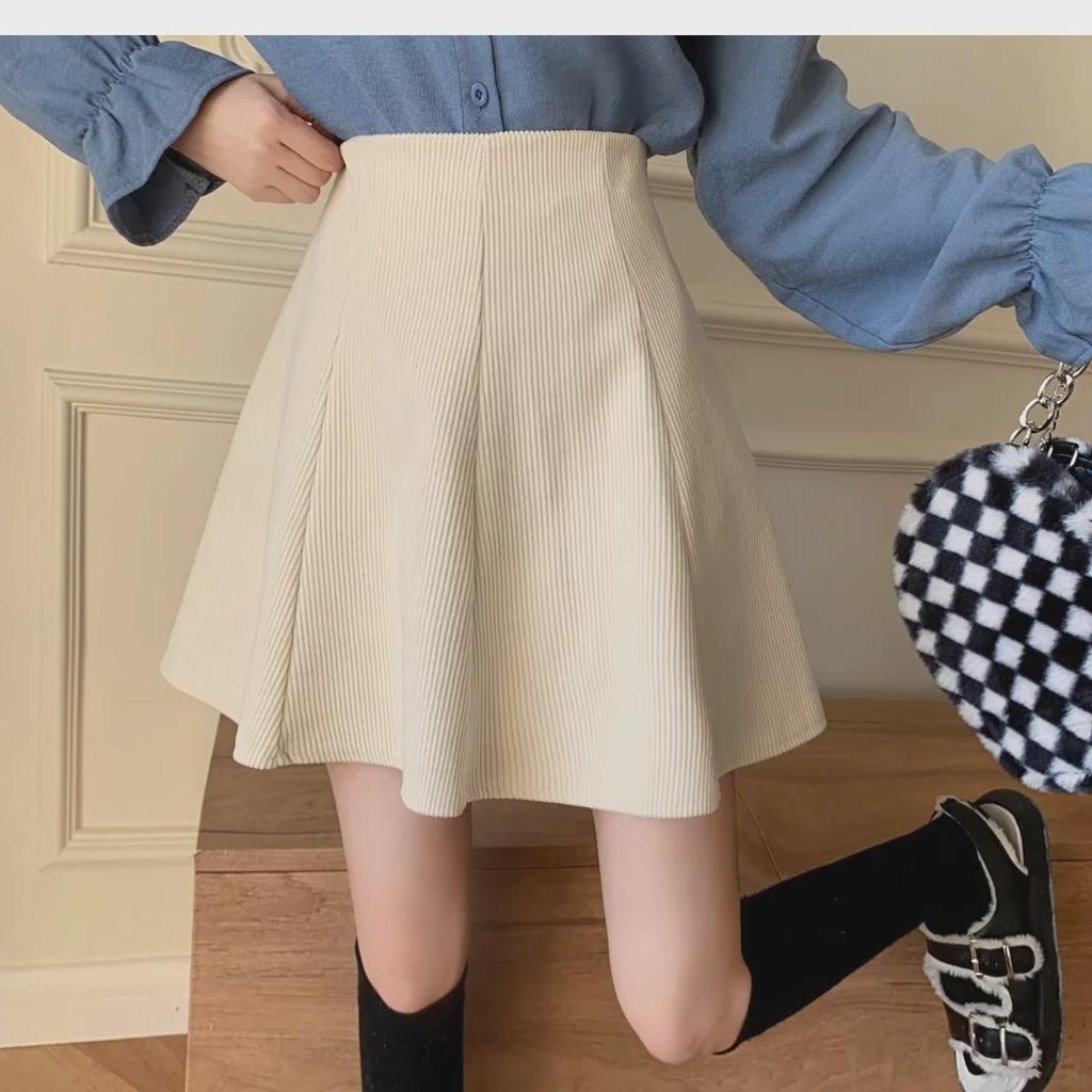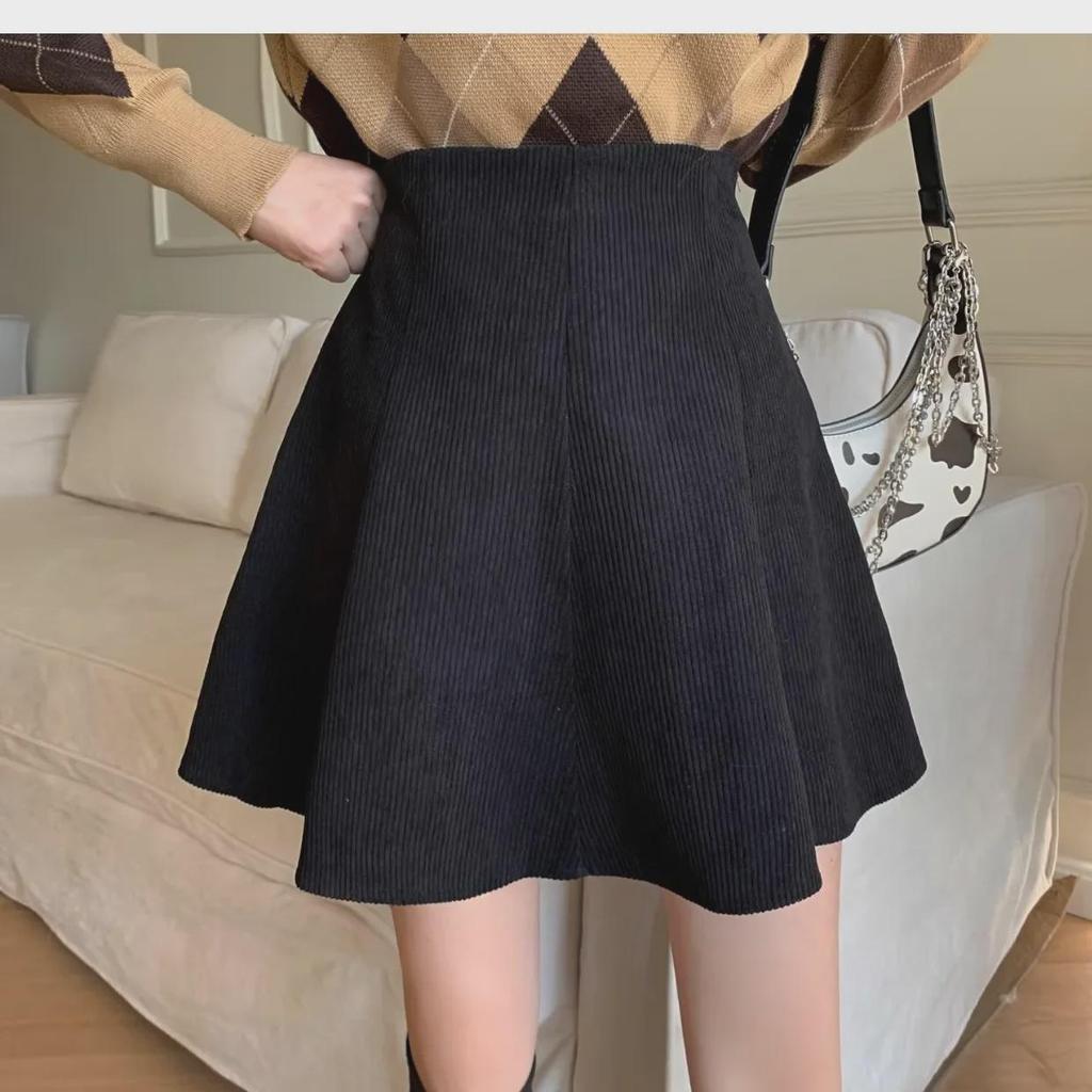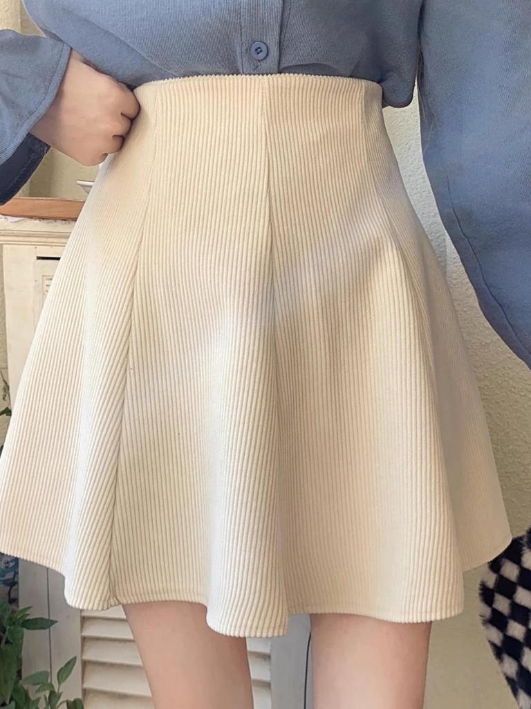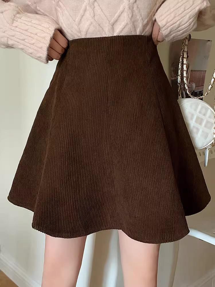 Женская вельветовая юбка А-силуэта с оборками 2023 года: Осень/Зима Высокая талия, облегающий крой, короткая длина