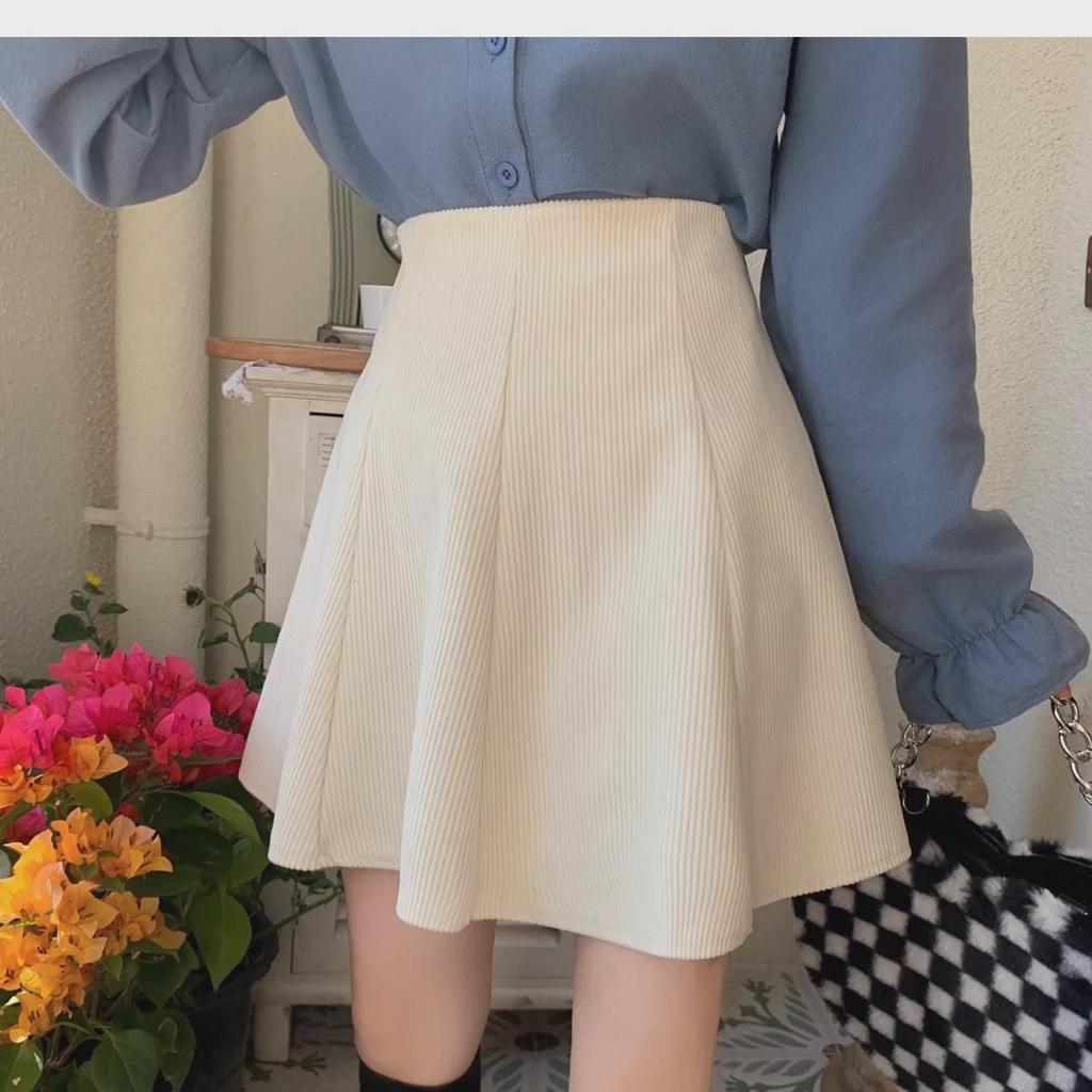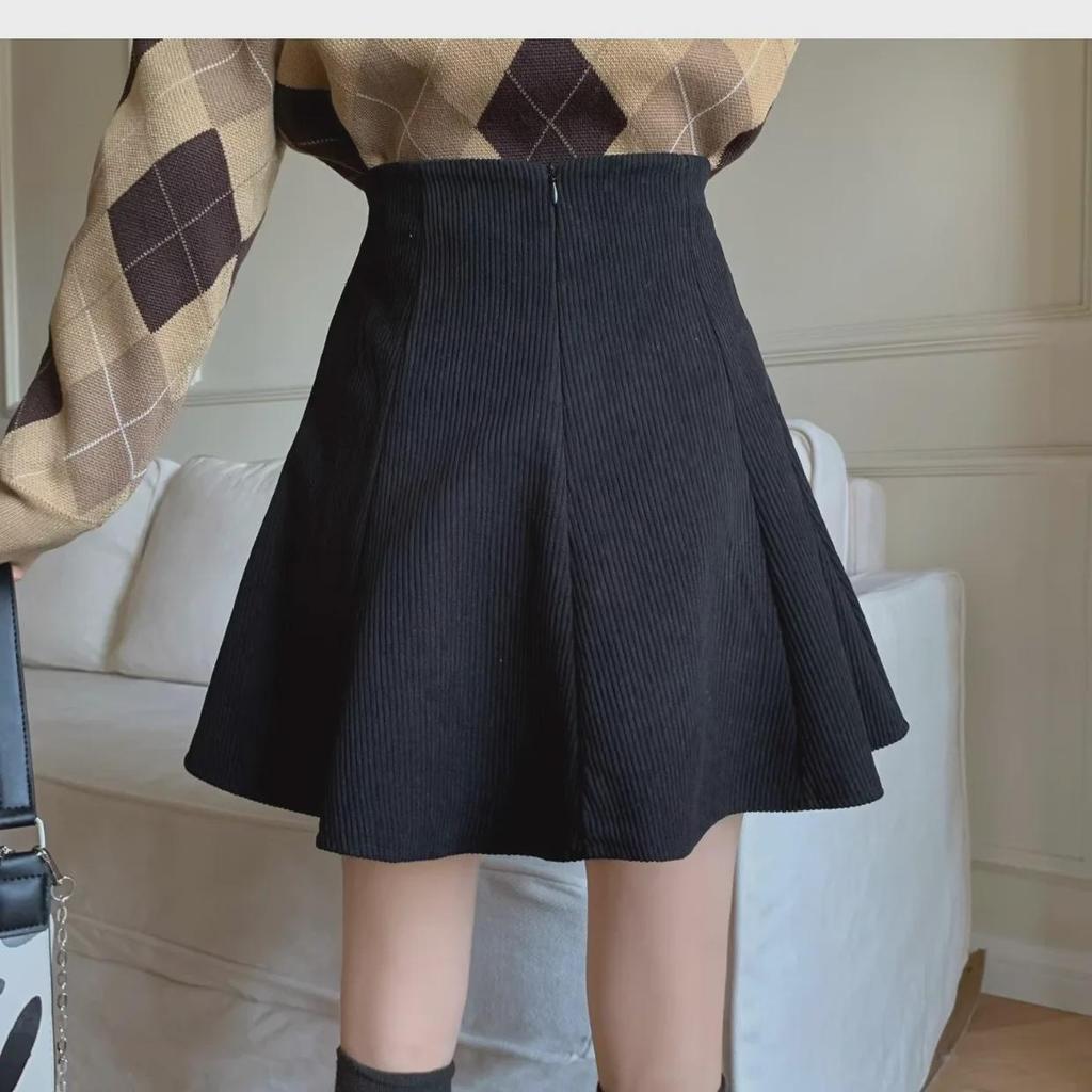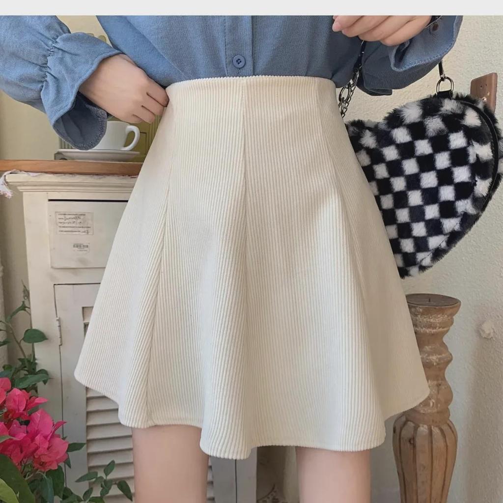Женская вельветовая юбка А-силуэта с оборками 2023 года: Осень/Зима Высокая талия, облегающий крой, короткая длина