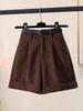 Женские узкие коричневые вельветовые шорты с высокой талией, осень/зима 2023 г. — корейский стиль, широкие штанины, покрой «ботинок»