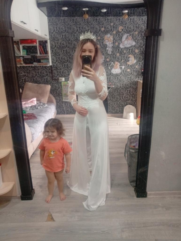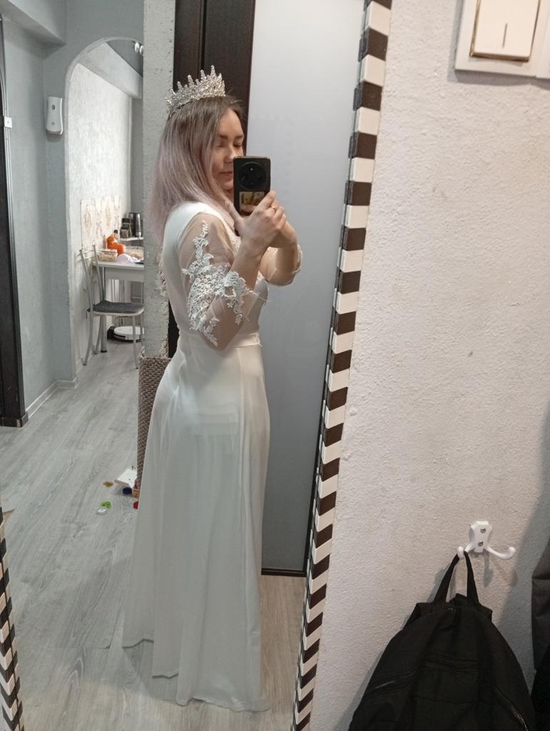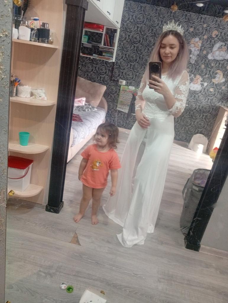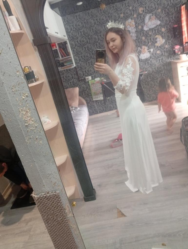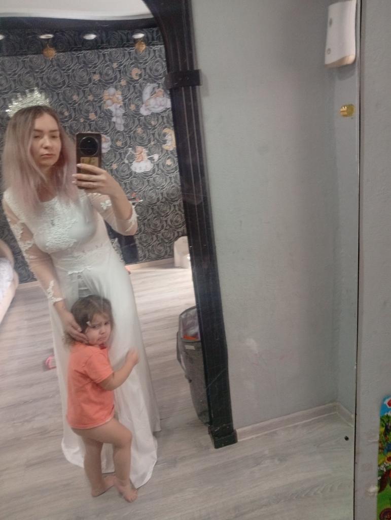 Платье роскошное, очень круто сидит, хорошо смотрится на тех у кого есть талия, как у меня, на 48 размер подошёл размер L и платье не давит, ткань тянется спокойно