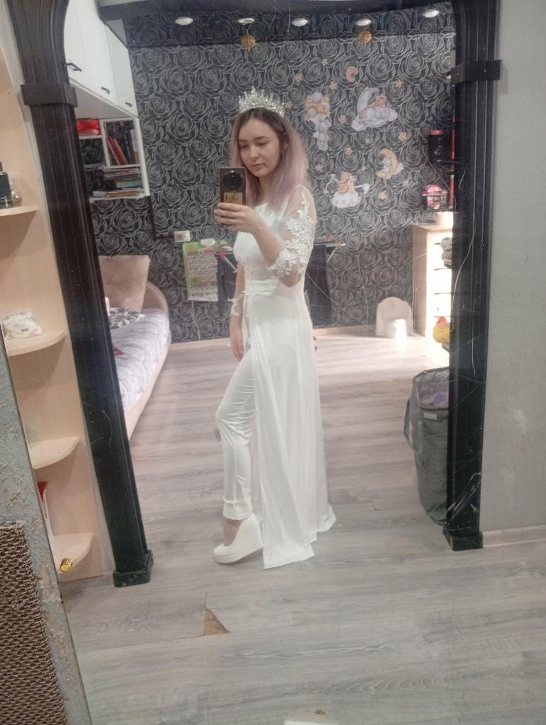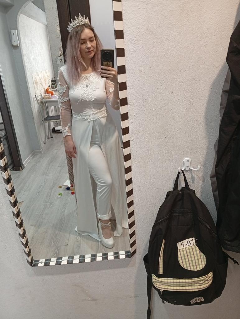Все подошло, ношу размер 48-50, брюки по размеру подошли, но подол у накидки длинноватый, рост у меня 162,придется укоротить, это не проблема, а остальном всё хорошо