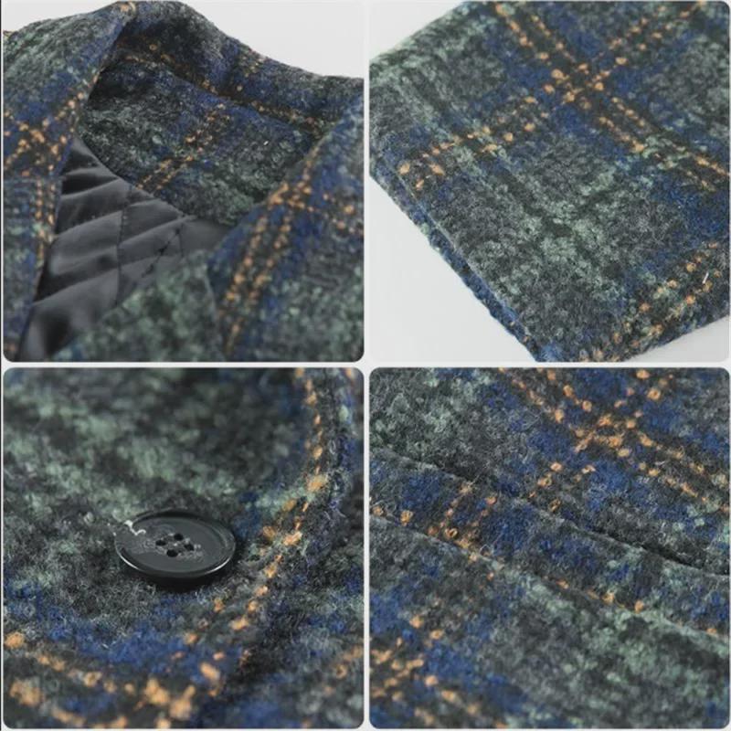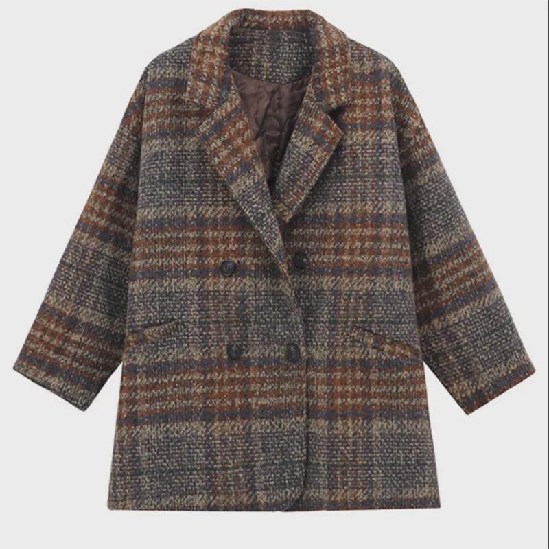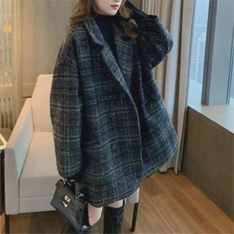 2025 Осень/Зима Корейское клетчатое шерстяное пальто для миниатюрных женщин - Модный дизайн из твида средней длины