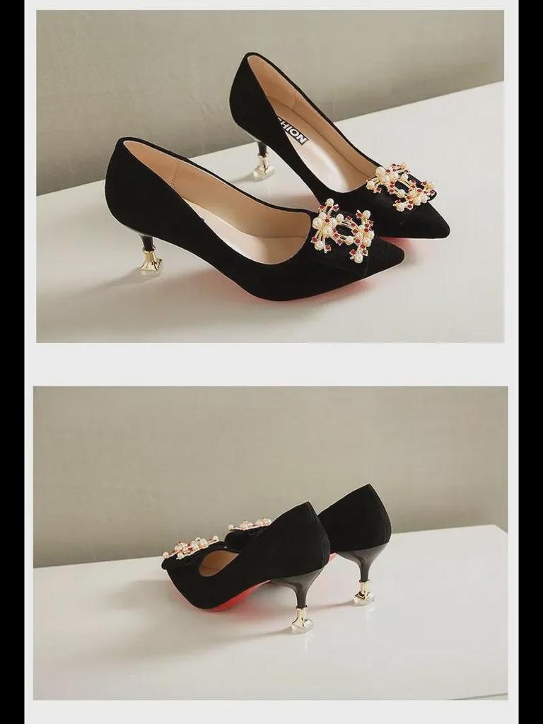 Женские красные свадебные туфли в китайском стиле на шпильке с жемчужной пряжкой