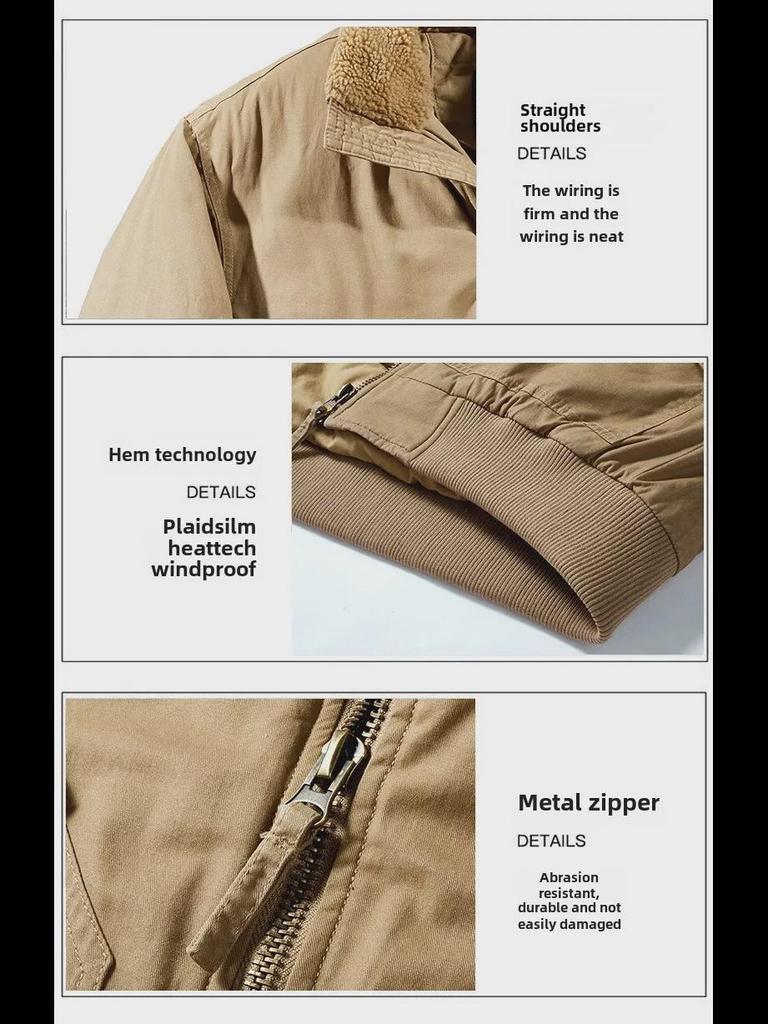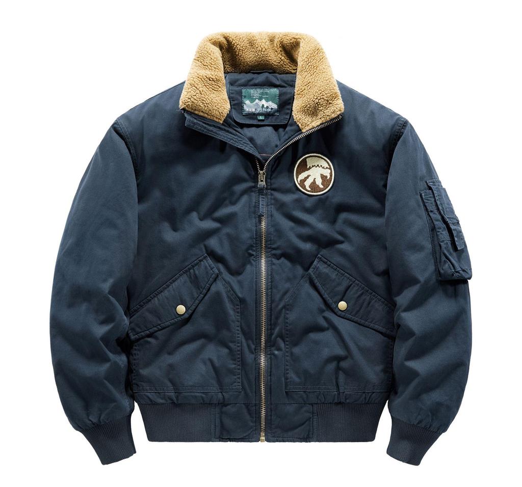 Мужская летная куртка из стираного хлопка - свободный крой, спущенные плечи, плотная повседневная рабочая куртка