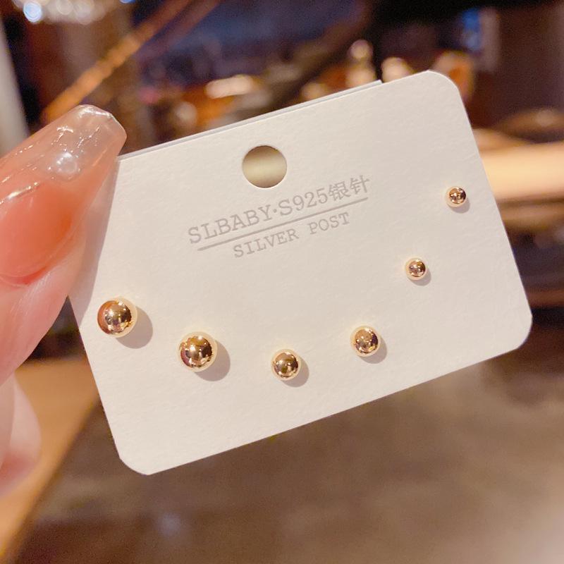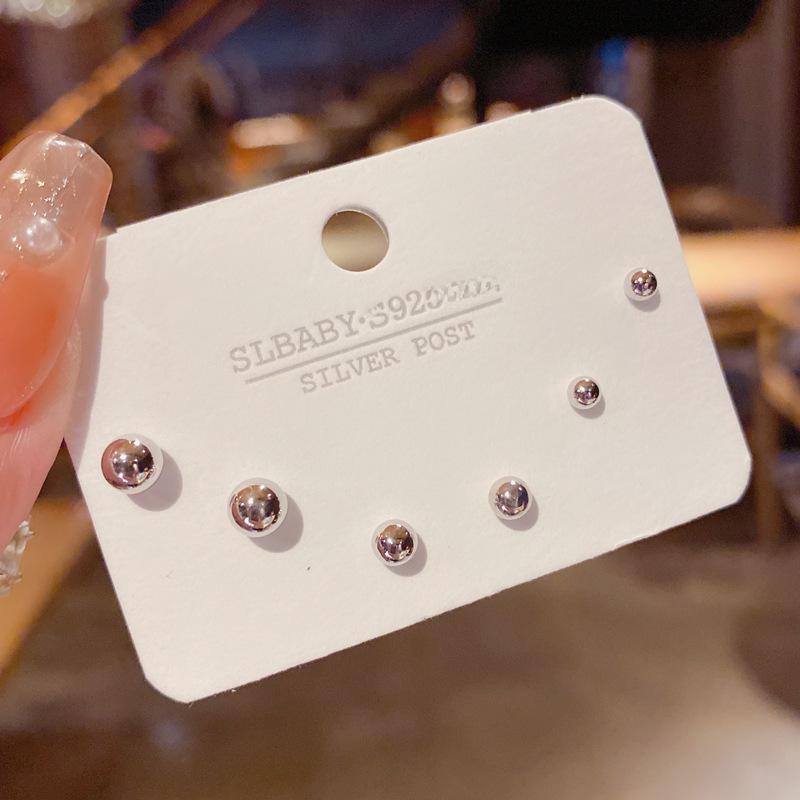 Комплект из трех серег-игл из серебра 925 пробы в корейском стиле с милой модой и простым графическим узором