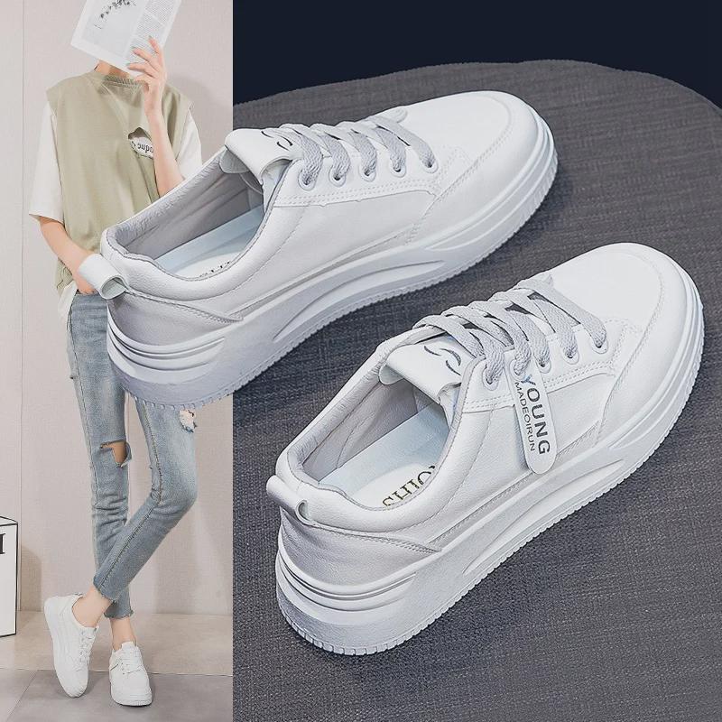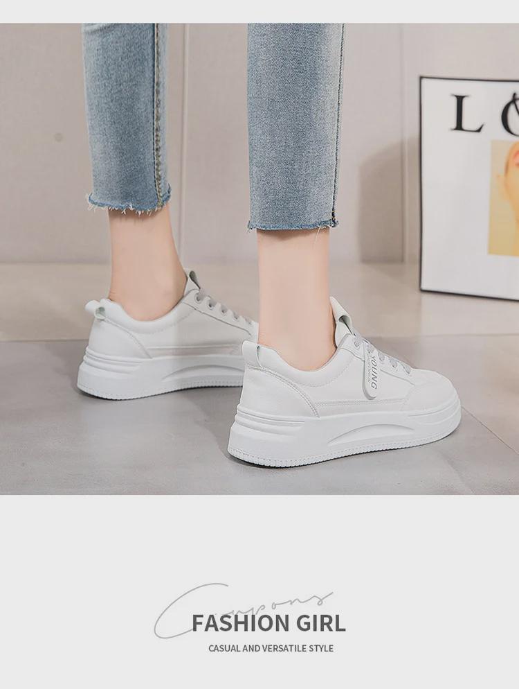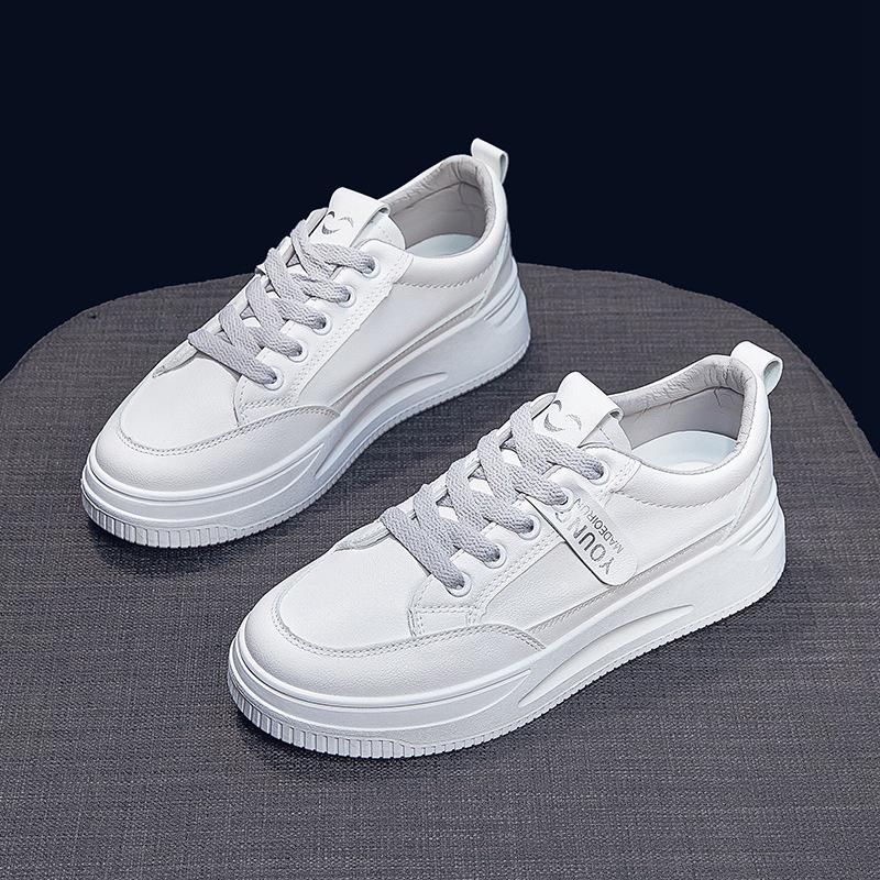Женские белые кроссовки на толстой подошве весна 2025 года — мягкая, удобная, универсальная повседневная обувь