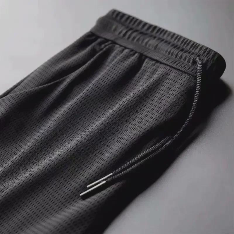 Мужские летние сетчатые быстросохнущие спортивные брюки свободного кроя из шелка