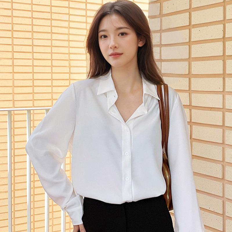 Минималистская рубашка для женщин на весну и осень, воротник поло, ленивый стиль, профессиональная универсальная рубашка для поездок на работу, однотонная рубашка, блузки и рубашки