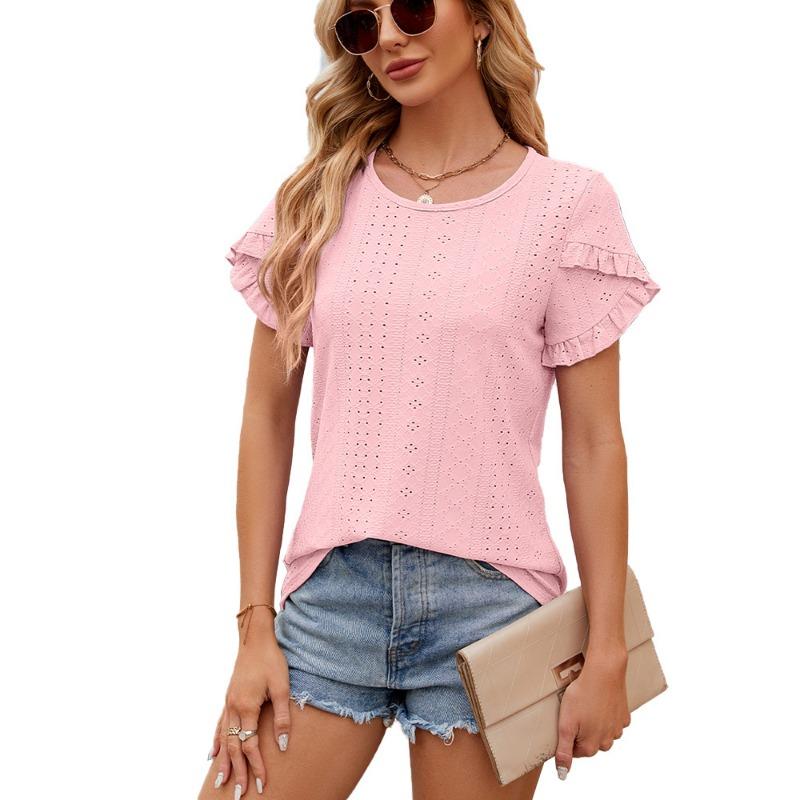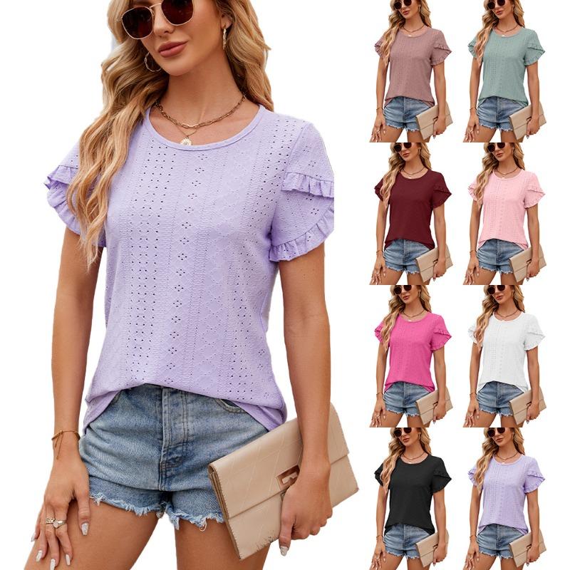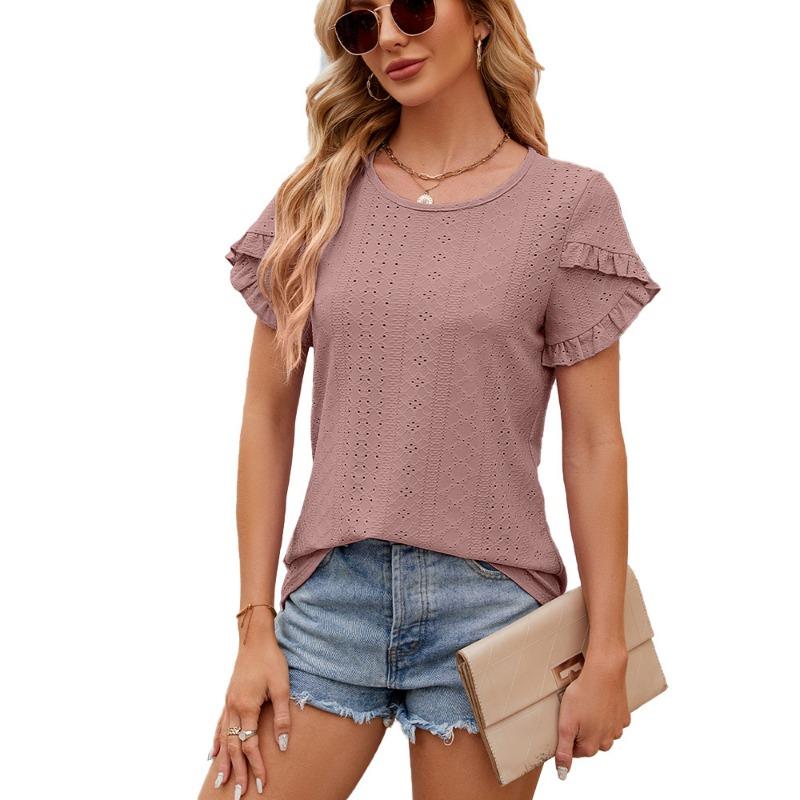 Летний однотонный топ с круглым вырезом и короткими рукавами-лепестками для женщин