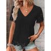 Красивая женская модная футболка с короткими рукавами и V-образным вырезом, кружевным воротником и свободным верхом — купить товар онлайн с бесплатной доставкой по всему миру!