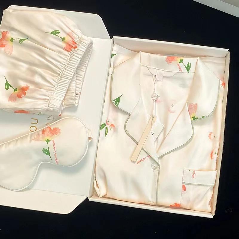 Женский летний комплект из шорт из искусственного шелка, повседневный женский топ с коротким рукавом и шорты, домашняя одежда, пижамный комплект с цветочным принтом и искусственными пятнами — купить товар онлайн с бесплатной доставкой по всему миру!
