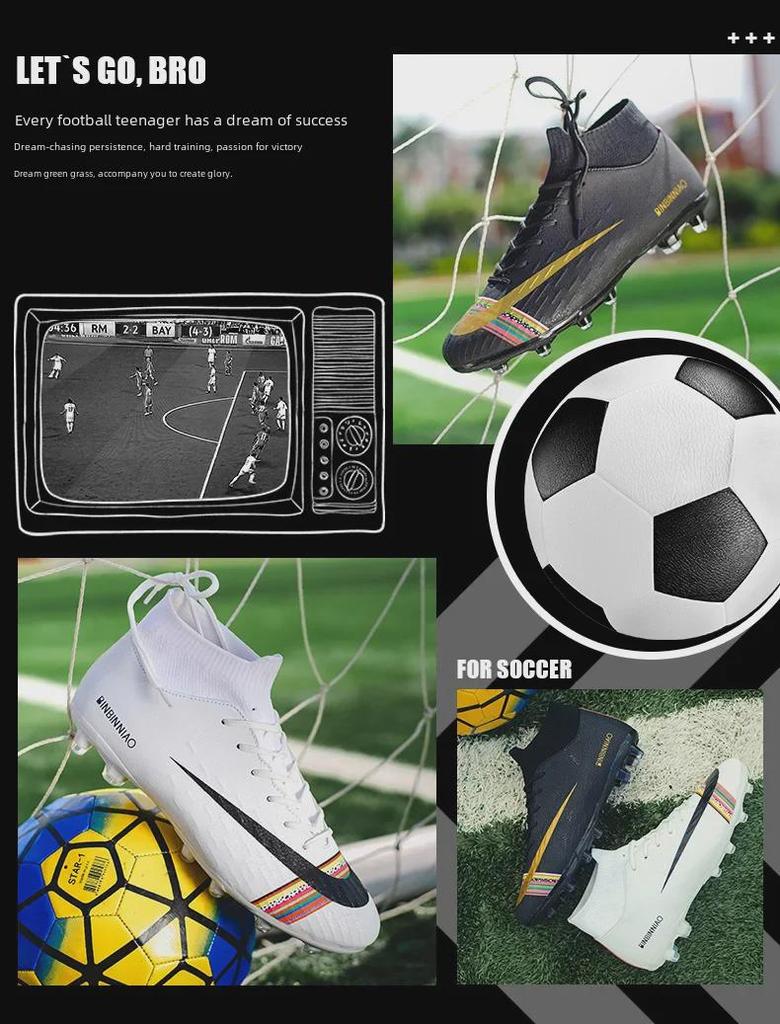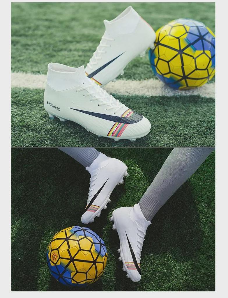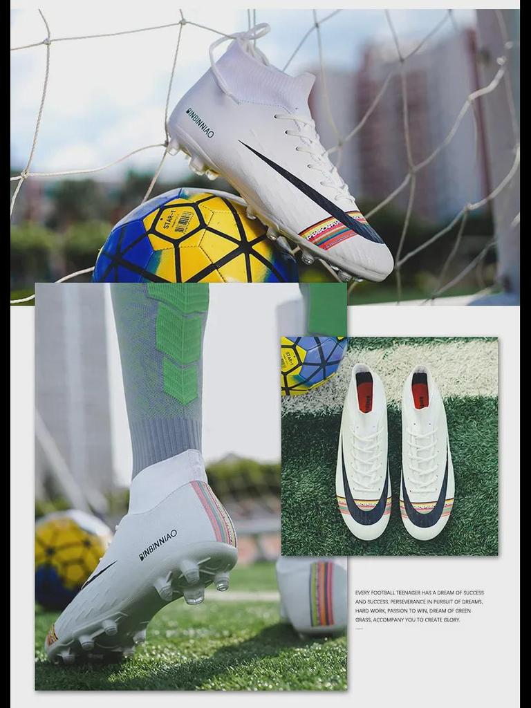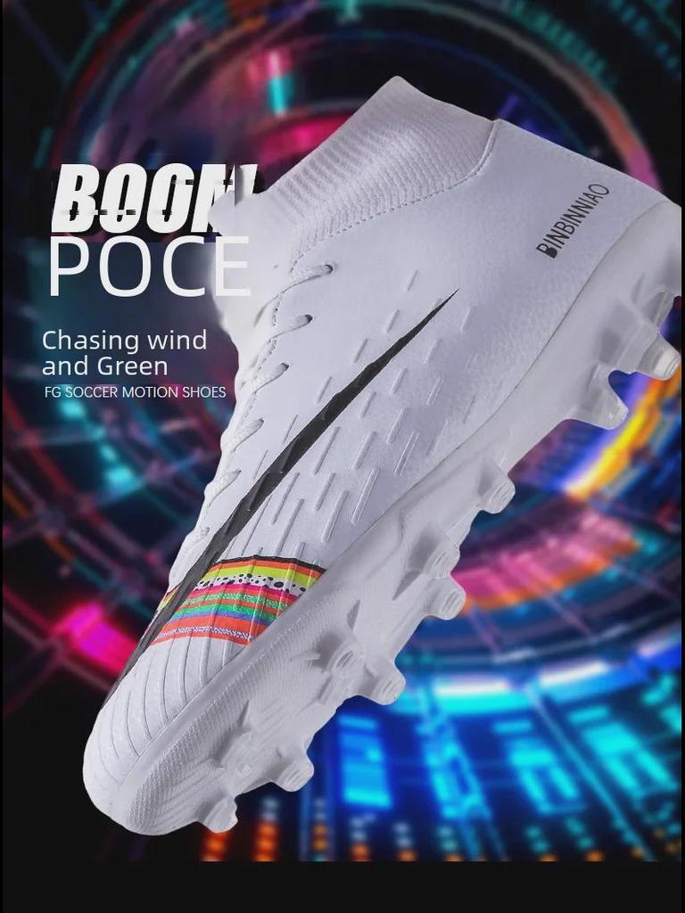 Эти яркие футбольные бутсы разработаны специально для взрослых и отличаются ярким радужным рисунком на высоком силуэте.. Идеально подходят для игр на территории кампуса и на искусственном газоне, сочетая в себе стиль и производительность.. Обувь изготовлена с дышащей сетчатой подкладкой для дополнительного комфорта, а прочная резиновая подошва обеспечивает отличное сцепление и устойчивость во время игры.. Верхний материал из полиуретана обеспечивает легкость и надежную посадку, что делает эти бутсы идеальным выбором как для любителей, так и для профессиональных игроков, которым нужны стиль и функциональность на поле.