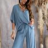 Летний повседневный свободный комплект из двух предметов для женщин с V-образным вырезом и рукавом «летучая мышь», повседневные комплекты из брюк для женщин, элегантные комплекты из двух предметов с рукавом «летучая мышь» для дома
