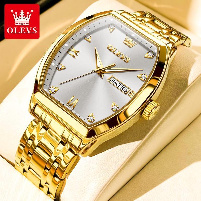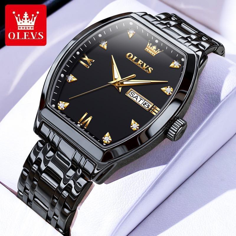 OLEVS Лучший бренд кварцевые часы для мужчин роскошные бриллианты элегантные нержавеющая сталь циферблат tonneau водонепроницаемые светящиеся мужские наручные часы
