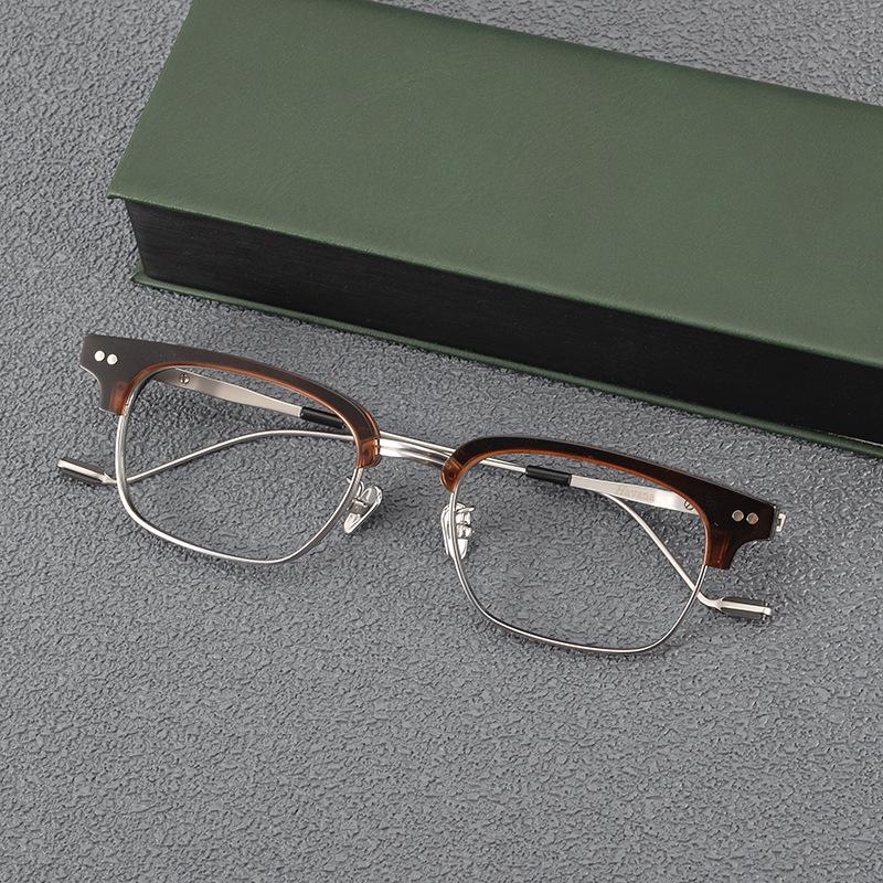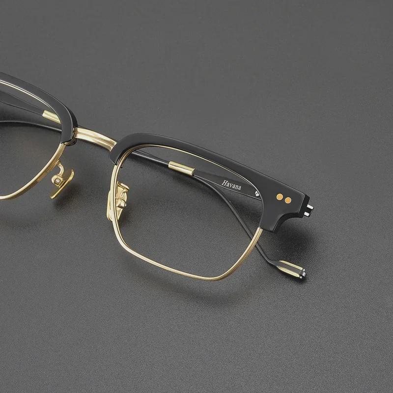 Мужские очки для коррекции близорукости из чистого титана с полуоправой и защитой от синего света, большой дизайн лица, стильная плоская оправа