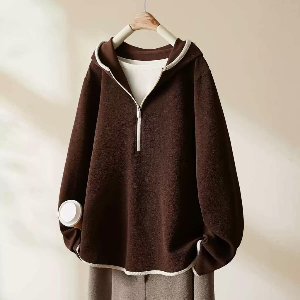 Американский весенне-осенний свитер с полумолнией для женщин, осенний новый контрастный цвет, свободный топ с капюшоном