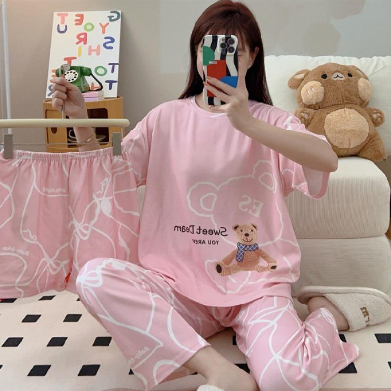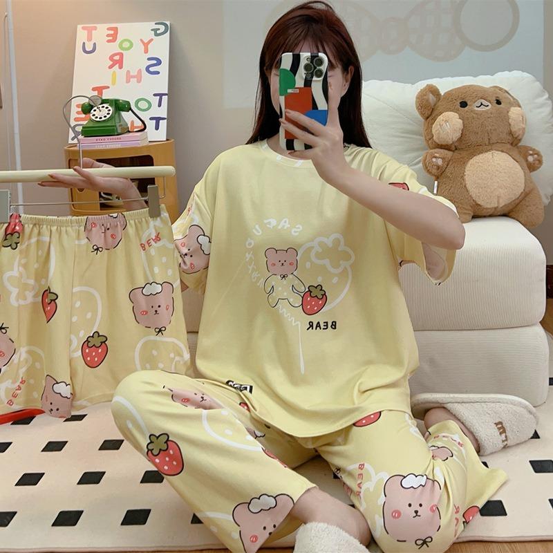3 шт./компл. женские пижамы с рисунком медведя из мультфильма, штаны с короткими рукавами, удобная одежда для сна, домашняя одежда для осени и зимы, одежда для отдыха