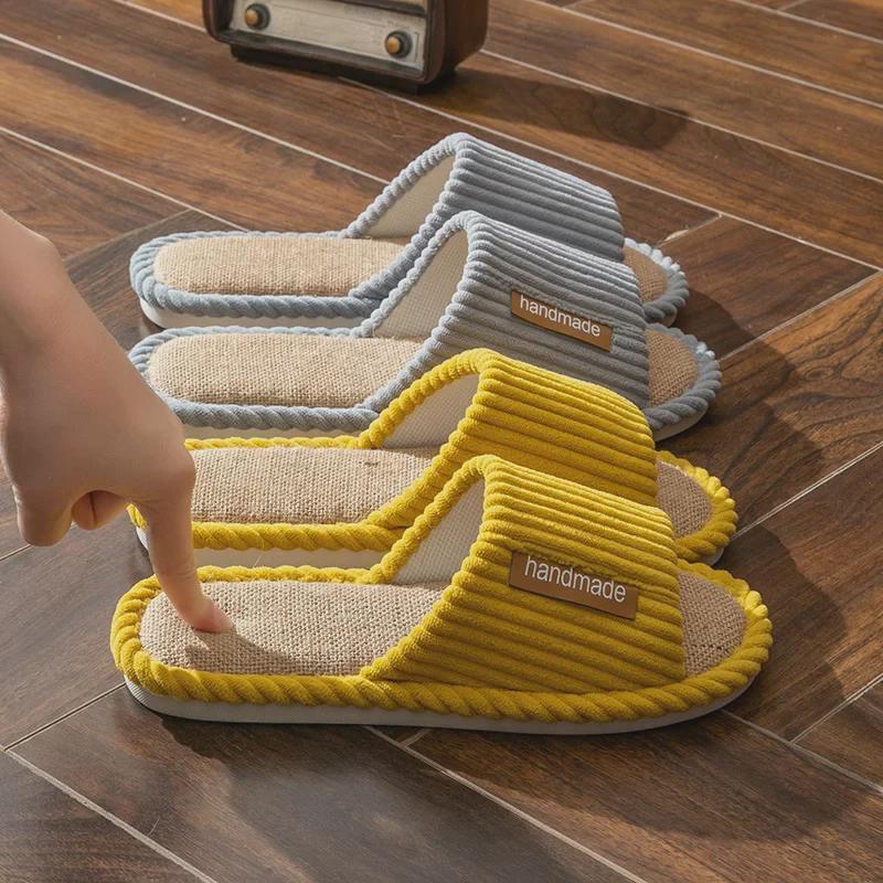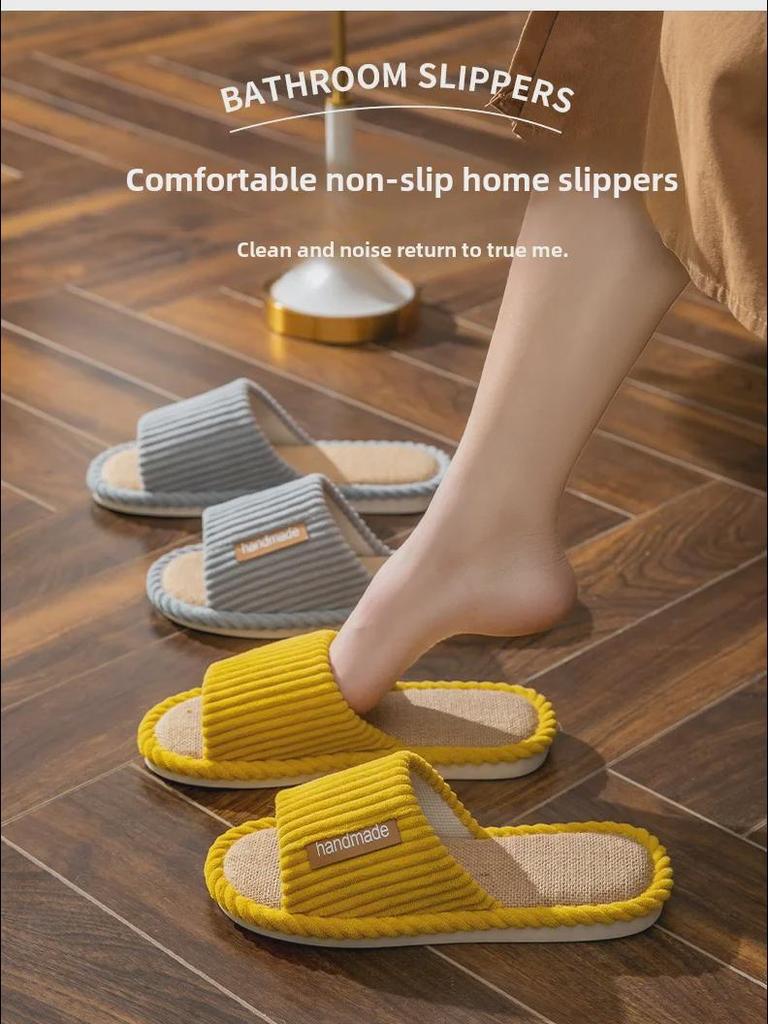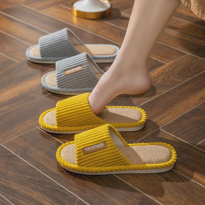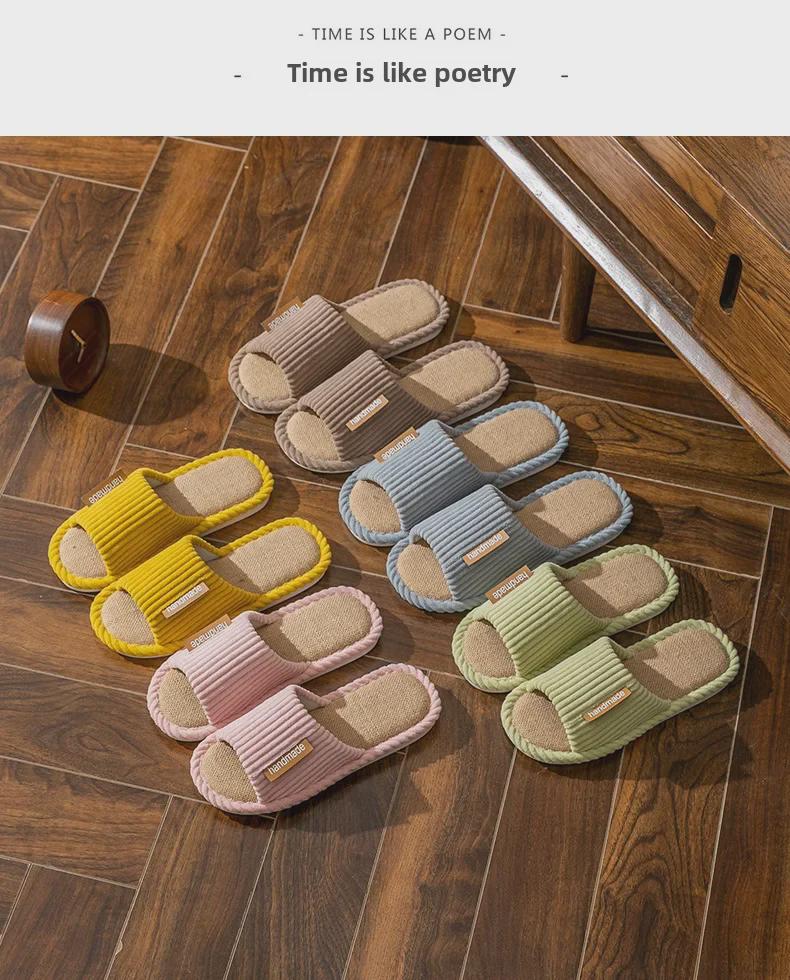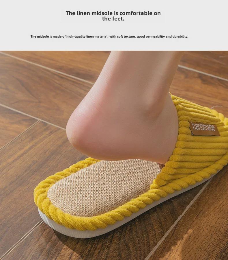 Женские домашние тапочки из хлопка и льна - бесшумные, на все времена года, для использования в помещении, лето/весна/осень.