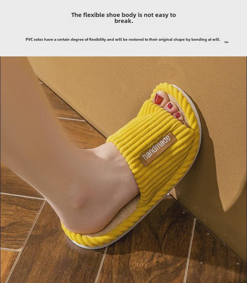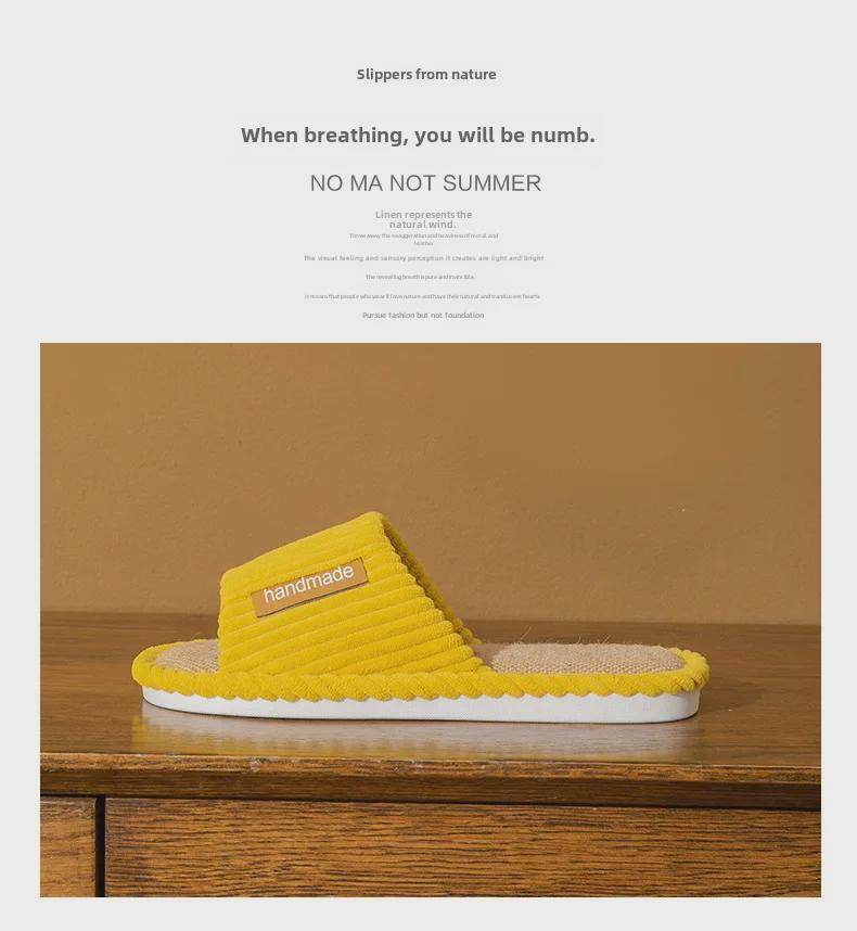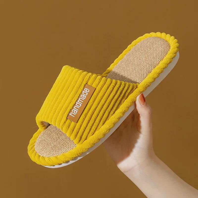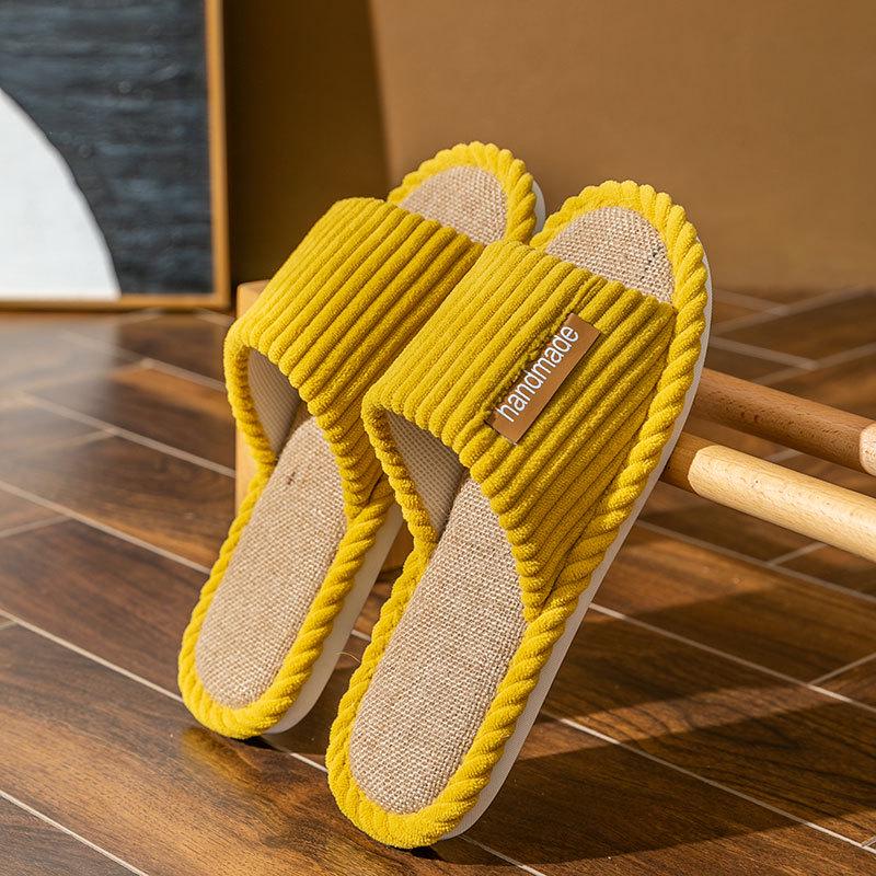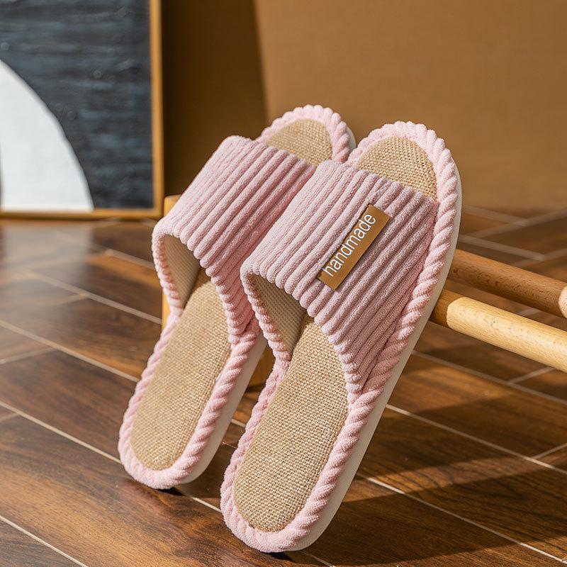 Женские домашние тапочки из хлопка и льна - бесшумные, на все времена года, для использования в помещении, лето/весна/осень.