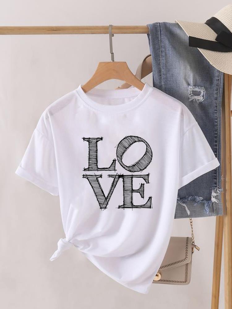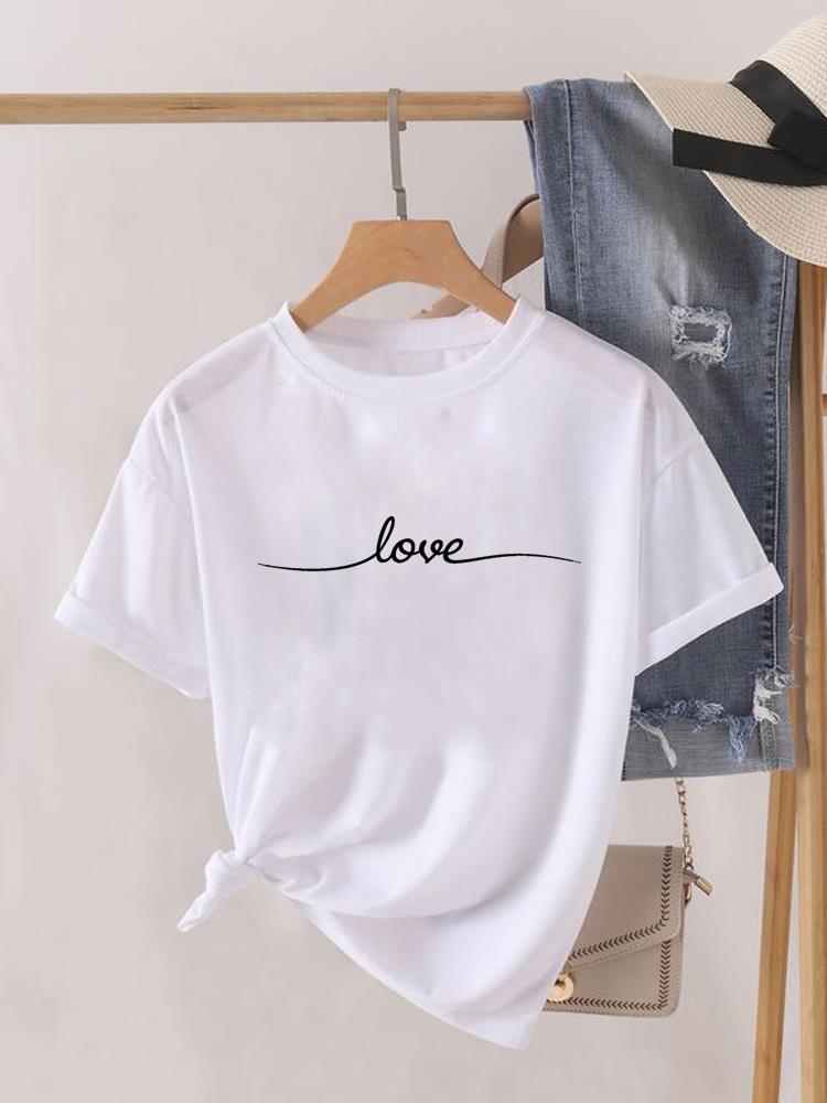 (Азиатский размер) Футболка с коротким рукавом и круглым вырезом Футболка с надписью «love letter» трендовая милая одежда Топ повседневная модная принтованная женская женская графическая футболка