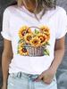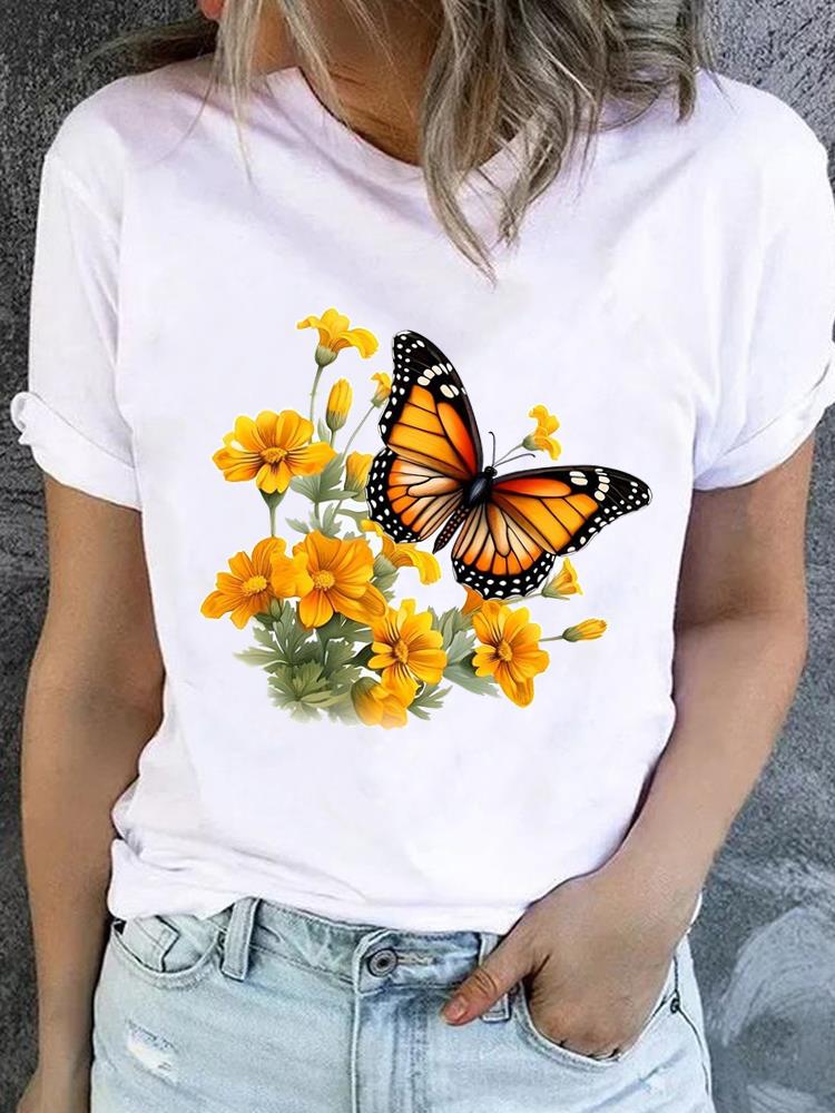 (Азиатский размер) Футболка с круглым вырезом и принтом бабочка цветок милая одежда Топ с коротким рукавом футболка повседневная мода принт женская женская графическая футболка