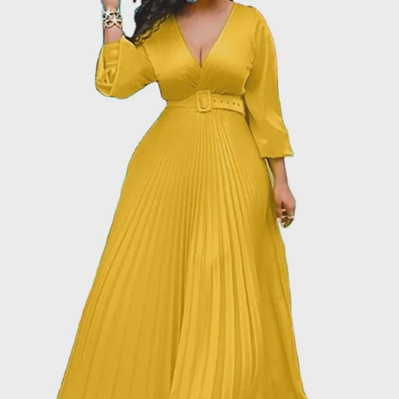 Длинное платье из желтого шифона в стиле ретро с высокой талией и поясом