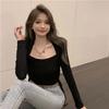 Шикарная женская футболка с длинным рукавом из коллекции «Ранняя осень» — короткая, облегающая модель для модного образа — купить товар онлайн с бесплатной доставкой по всему миру!