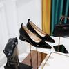 Корейские лакированные женские туфли с острым носком — модные, простые, удобные, с универсальным толстым каблуком средней высоты