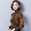 Женский свитер с высоким воротом, яркой сетчатой марлей, на весну, осень и зиму, с бархатным толстым принтом и длинным рукавом внутри, теплый топ