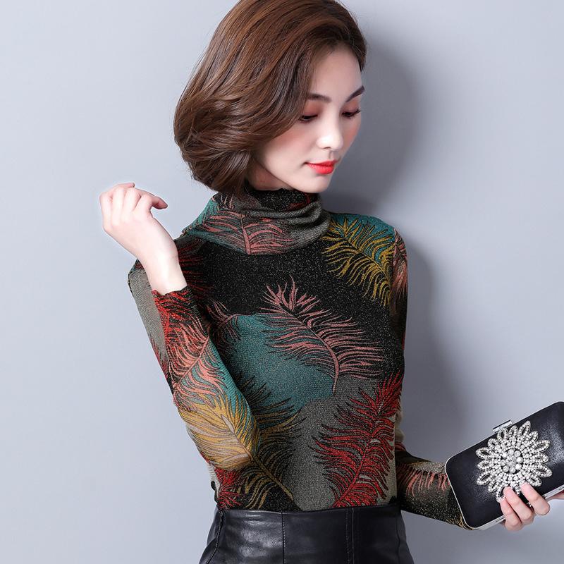 Женский свитер с высоким воротом, яркой сетчатой марлей, на весну, осень и зиму, с бархатным толстым принтом и длинным рукавом внутри, теплый топ — купить товар онлайн с бесплатной доставкой до всему миру!
