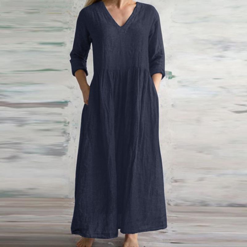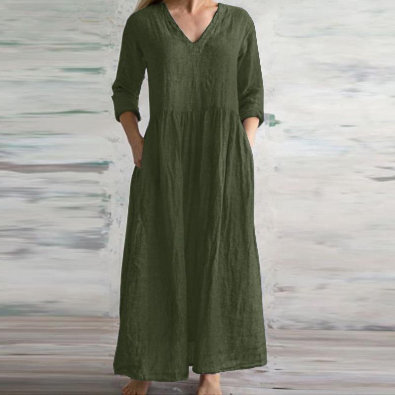 Женские длинные плиссированные платья с карманом и V-образным вырезом и рукавом четверть длины