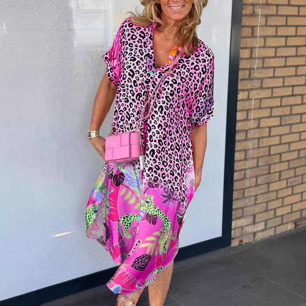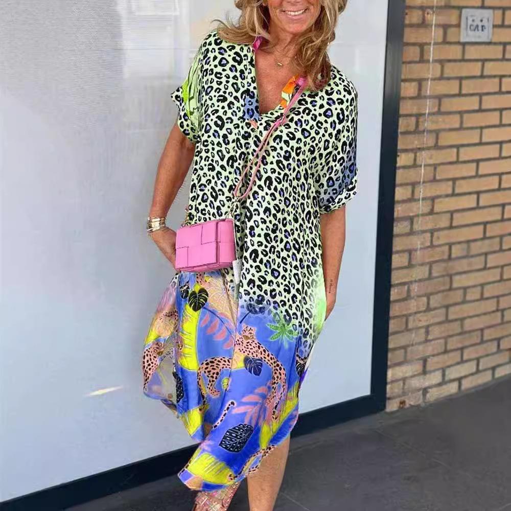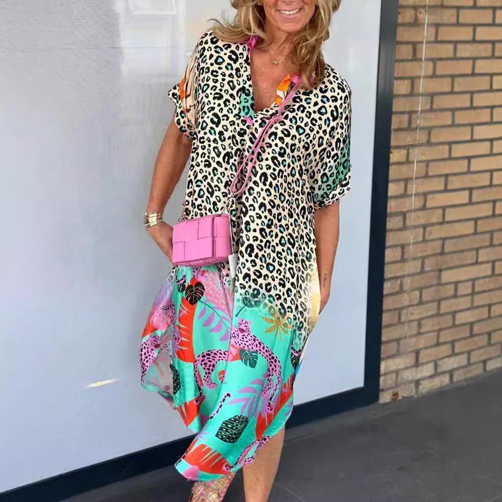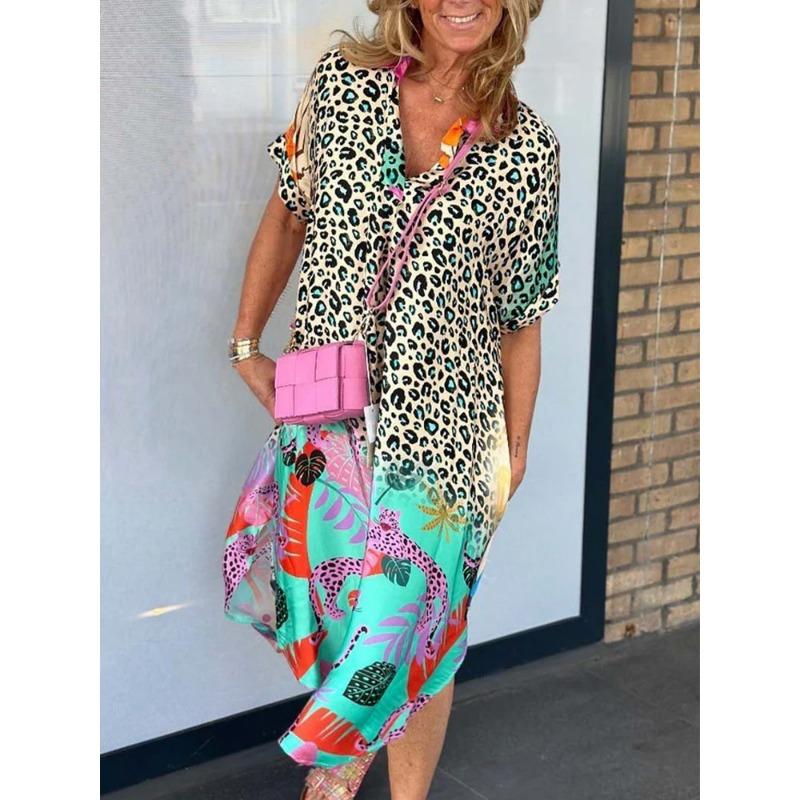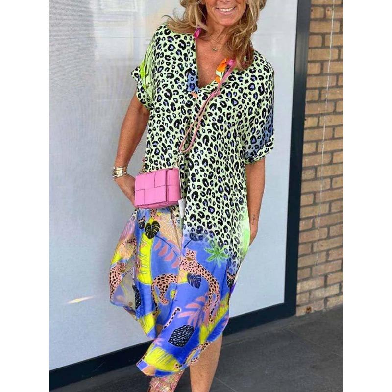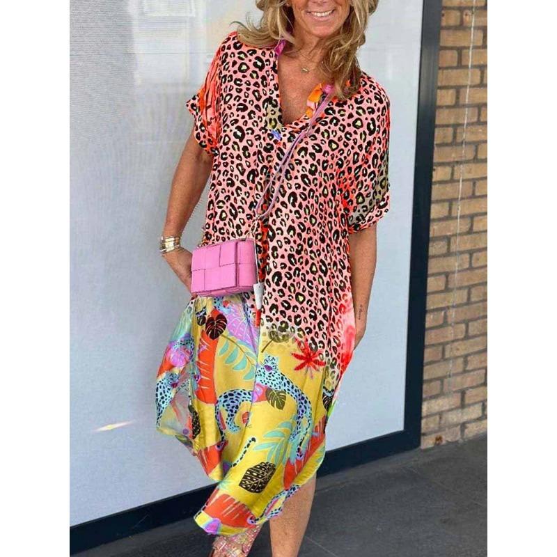 Летние женские модные свободные платья с полуразрезом на шее и принтом