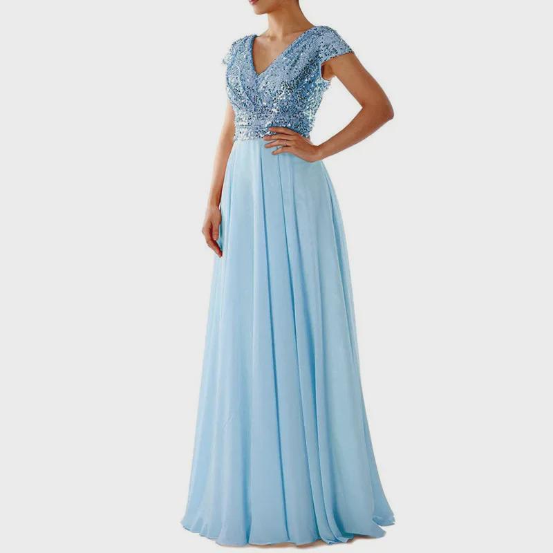 Новое вечернее платье из шифона с V-образным вырезом и пайетками — купить товар онлайн с бесплатной доставкой по всему миру!