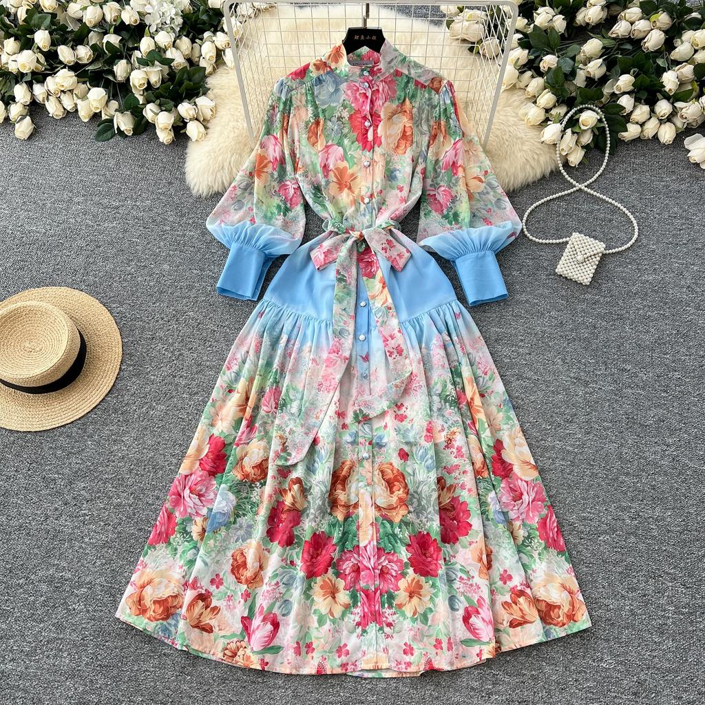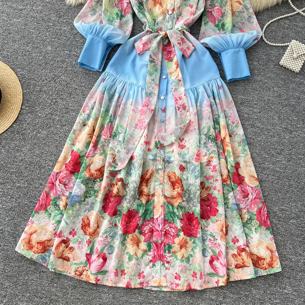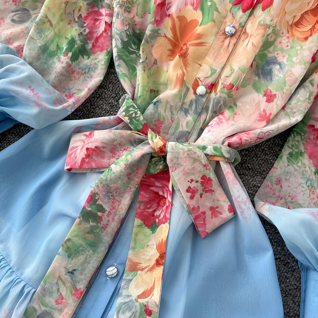 Весна-лето Женский принт шифоновый халат большого размера Длинный макси свободный пляжный наряд со шнуровкой