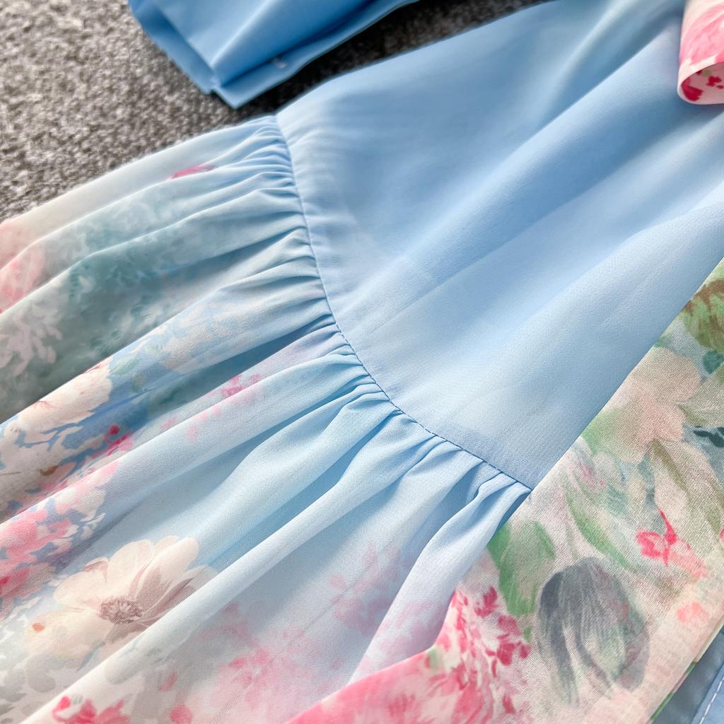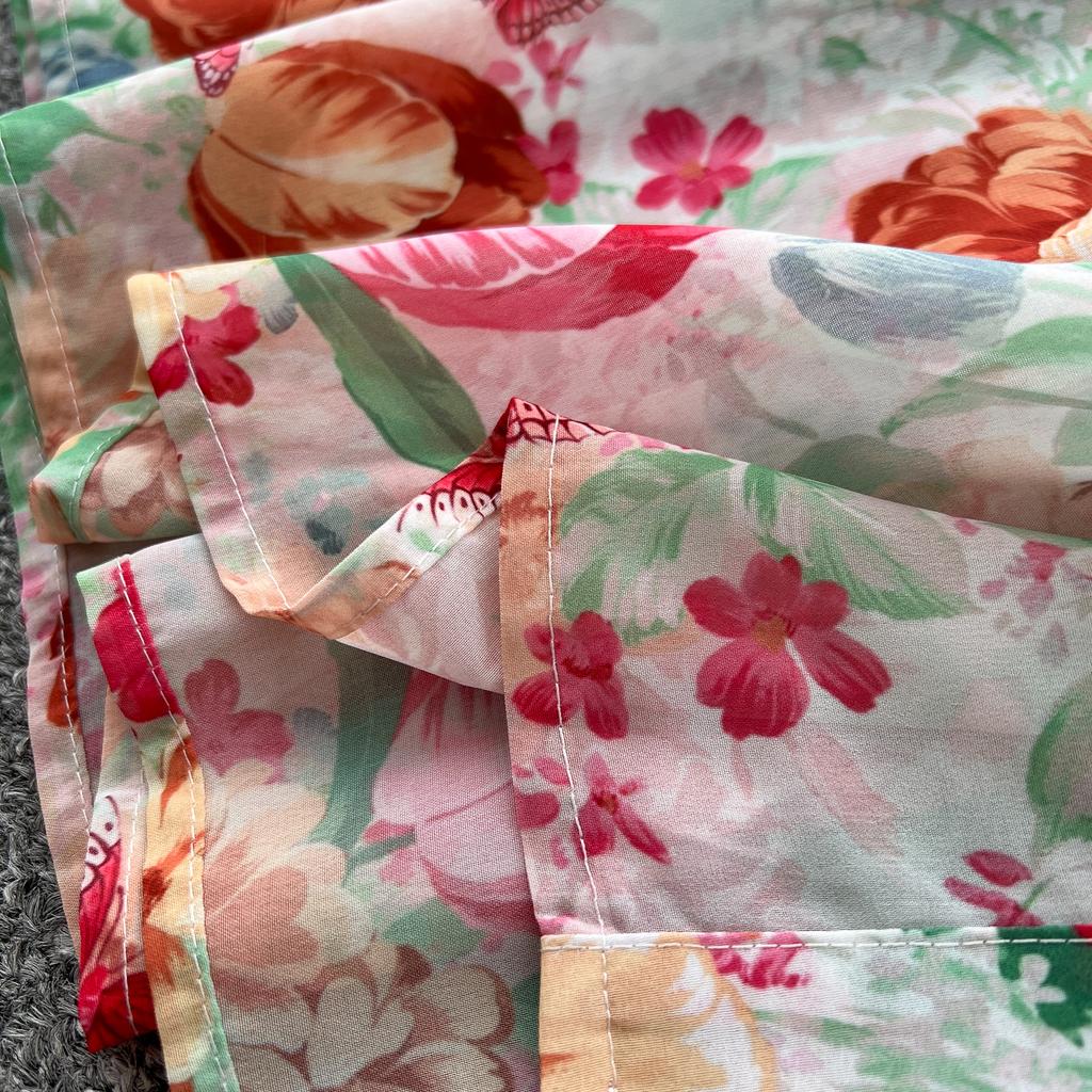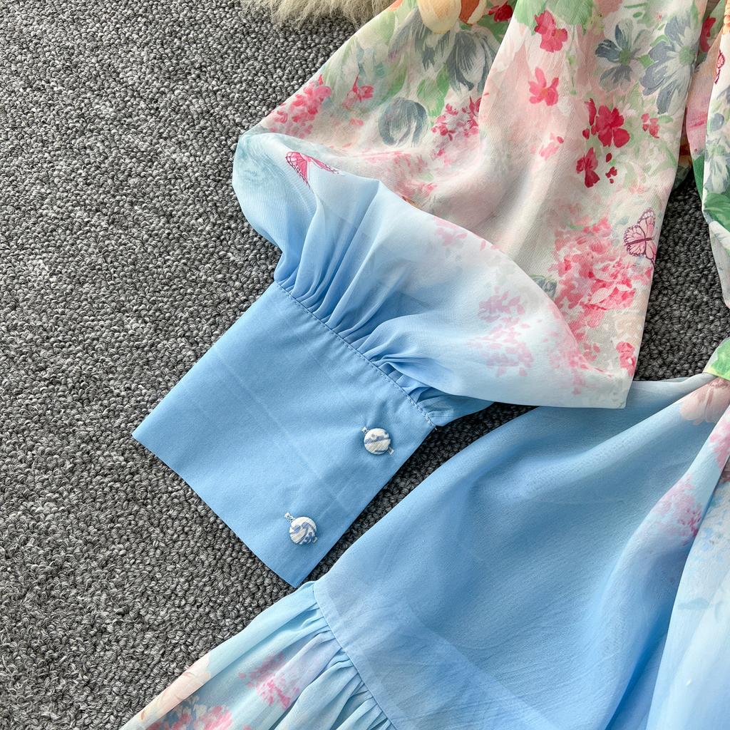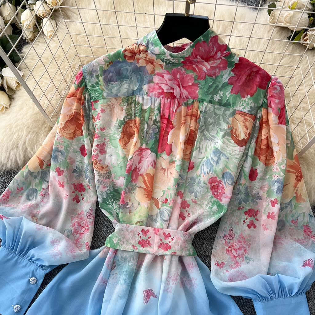 Весна-лето Женский принт шифоновый халат большого размера Длинный макси свободный пляжный наряд со шнуровкой