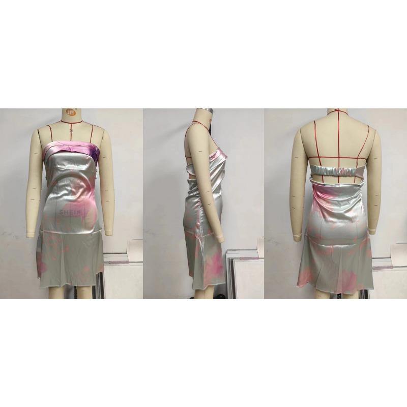 Женское летнее сексуальное короткое платье без бретелек с открытой спиной и цифровым принтом