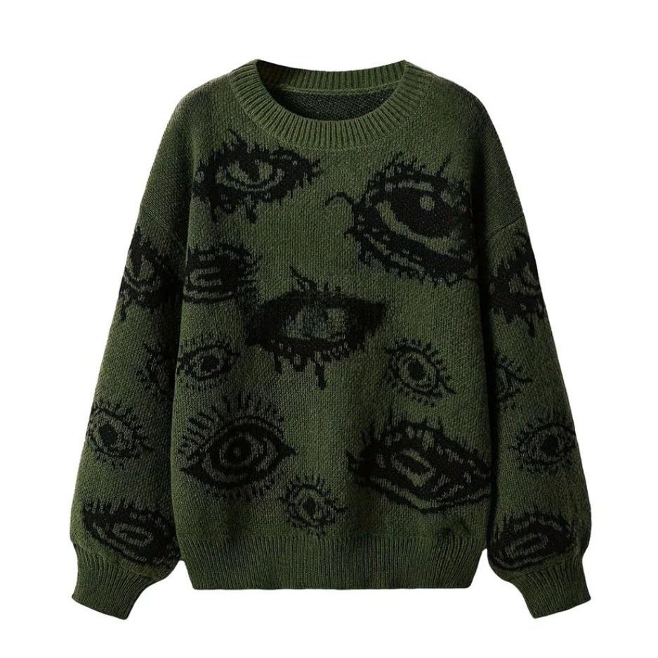 Унисекс уличный стиль граффити узор контрастный пуловер свитер