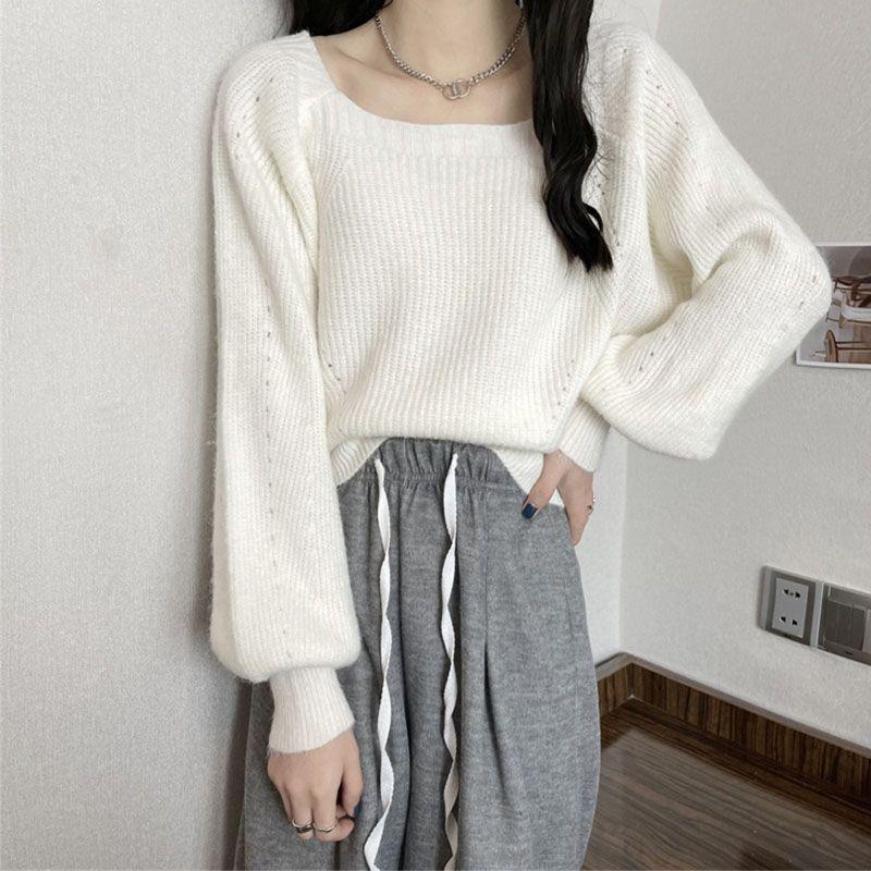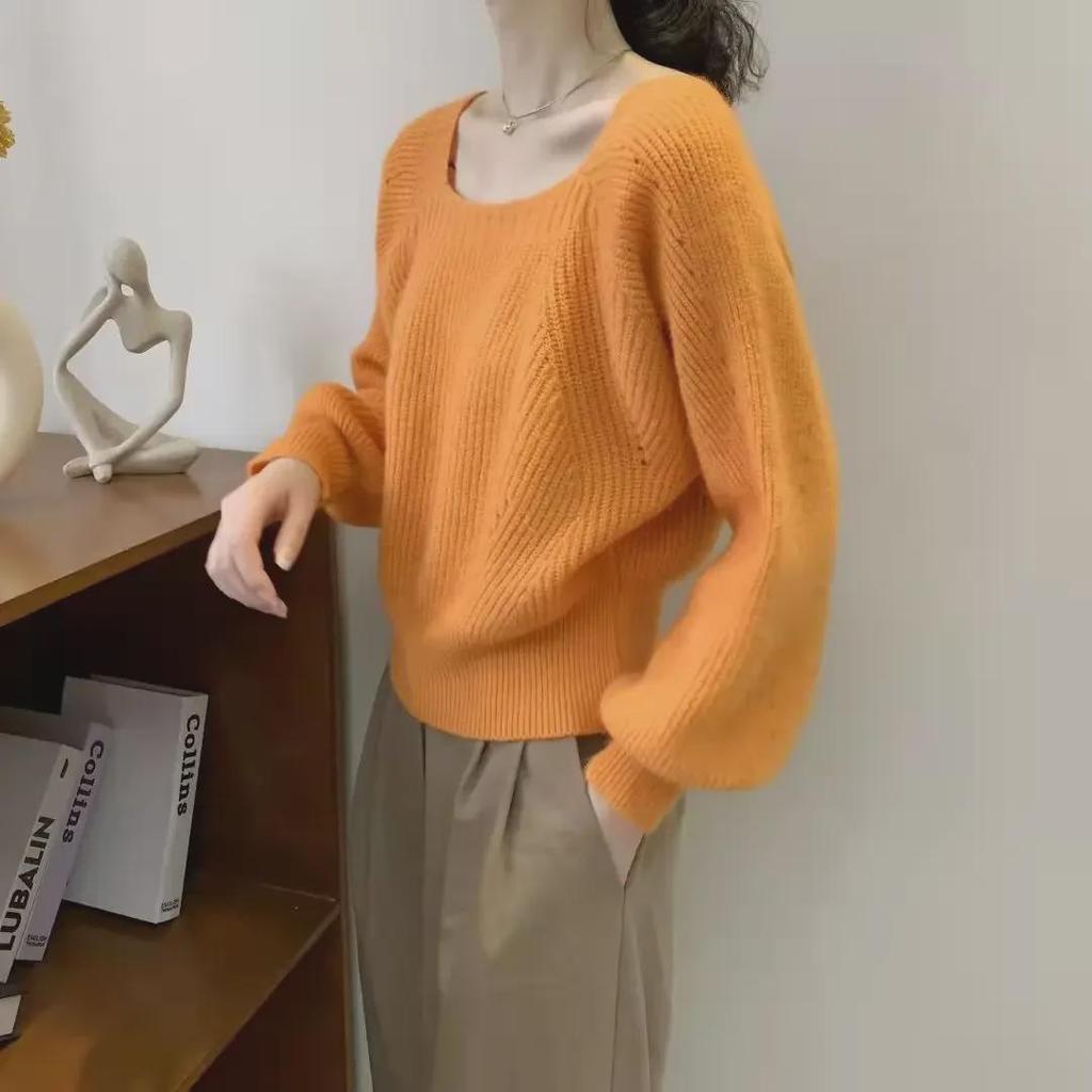 Женский вязаный свитер с рукавами-фонариками в европейском стиле