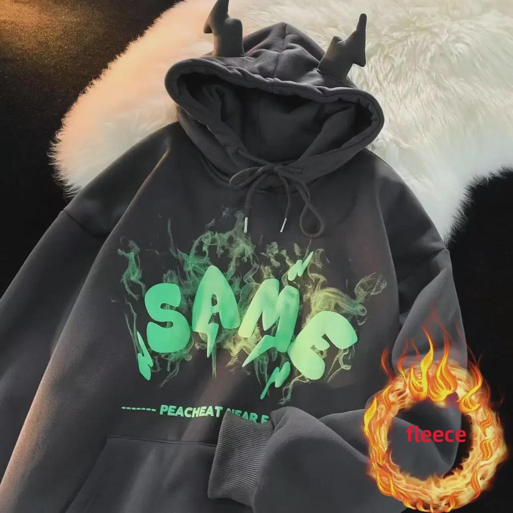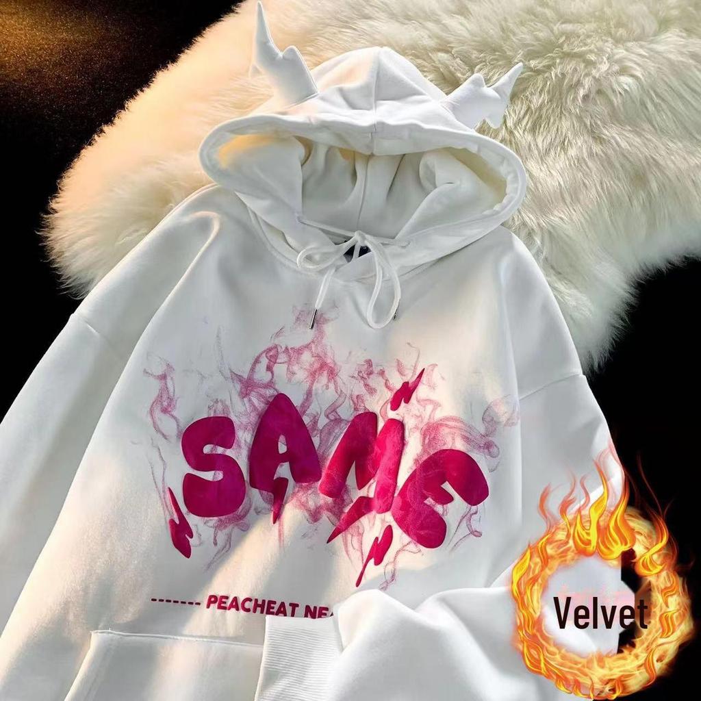 Мужская новинка осень/зима ретро хип-хоп Little Devil с капюшоном - свободный крой, куртка из плотного бархата