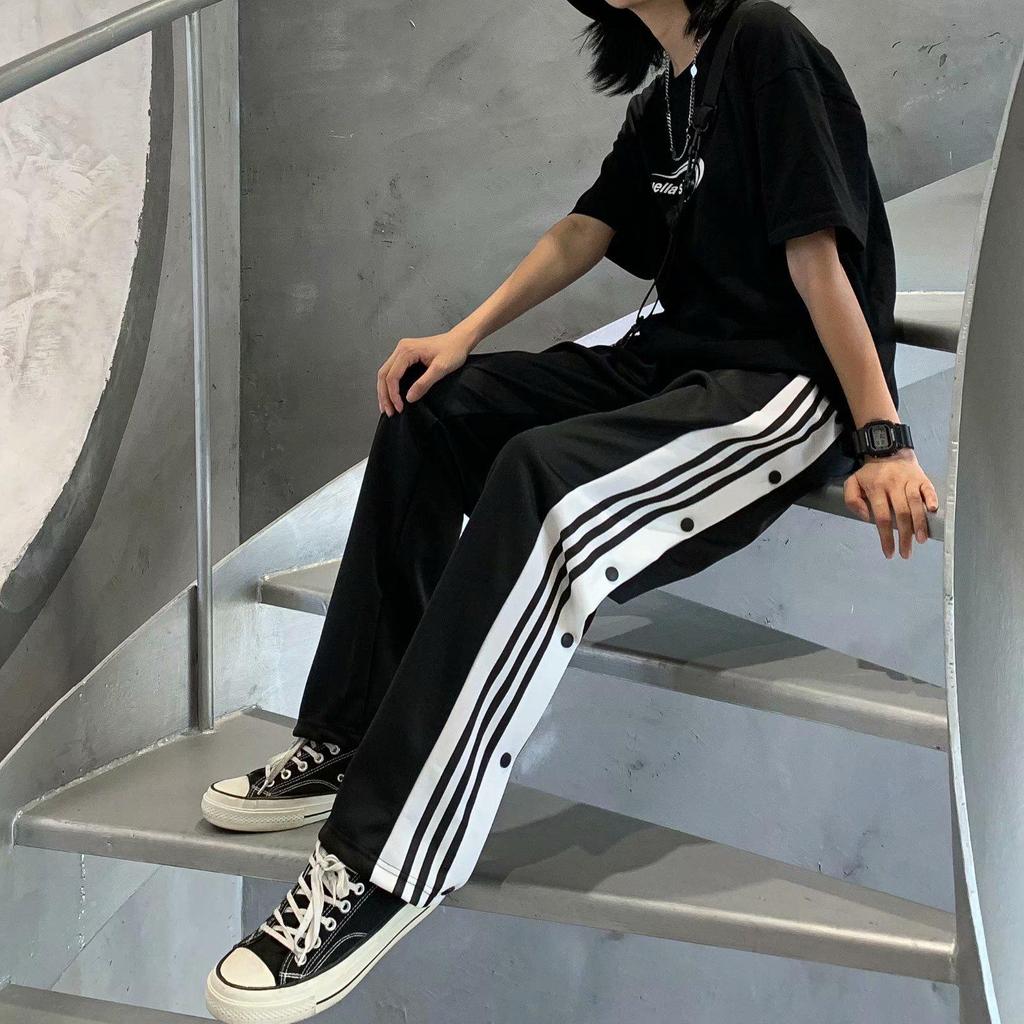 Мужские свободные брюки в полоску на пуговицах, стиль Гонконг, широкие повседневные брюки для подростков — купить товар онлайн с бесплатной доставкой до всему миру!