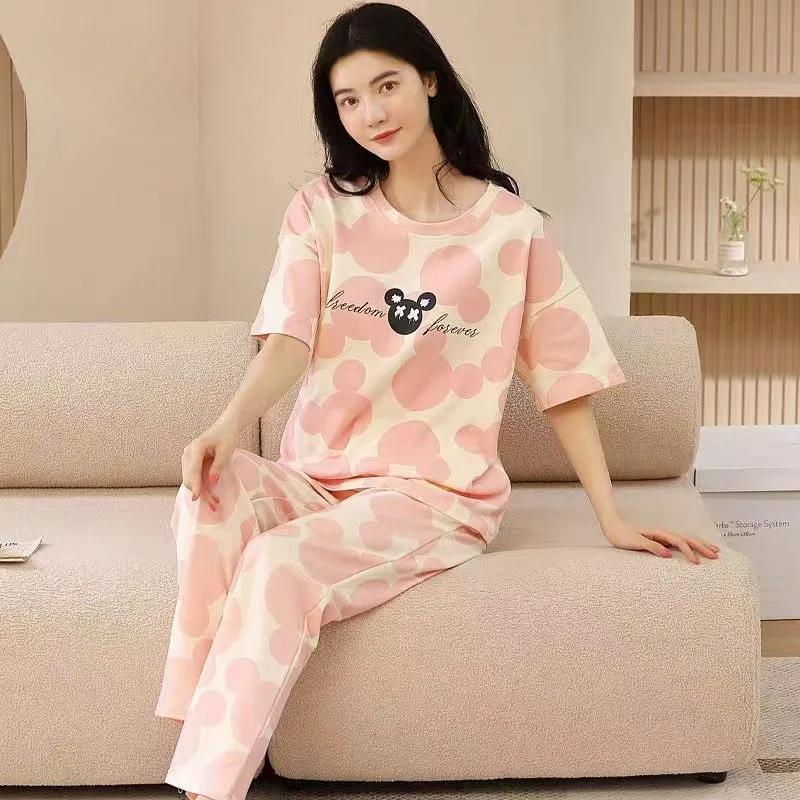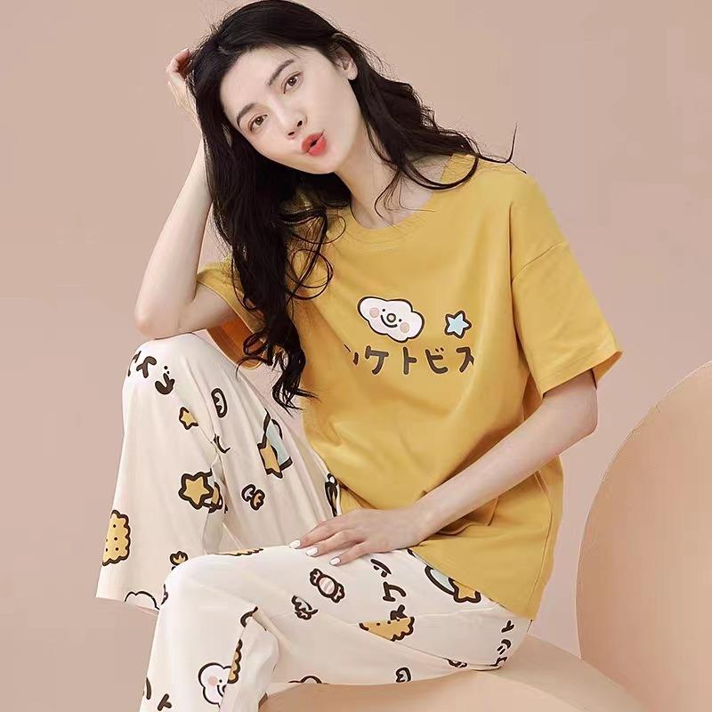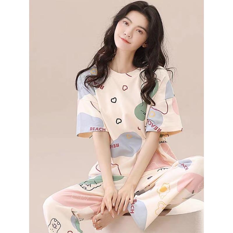Пижамный комплект для женщин с коротким рукавом, длинные брюки, студенческий повседневный мультяшный медведь, милая пижама, домашняя одежда, романтическая ночная рубашка